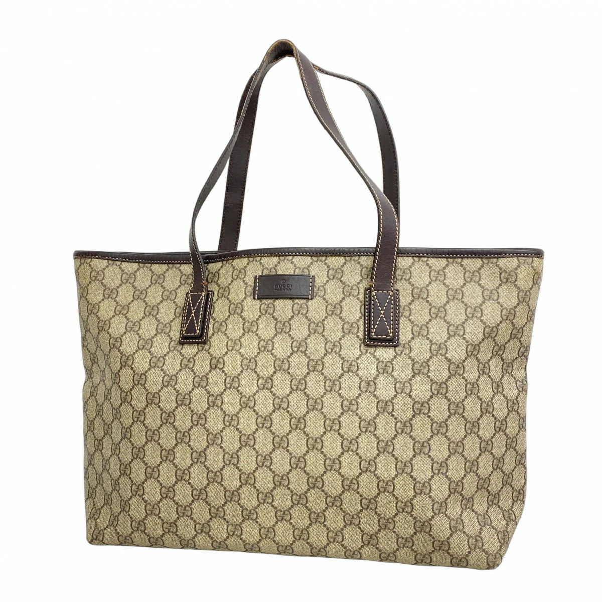 ★最終価格【5ob1243】グッチ トートバッグ GGスプリーム 211137 PVC ベージュ ブラウン シルバー金具【中古】レディース