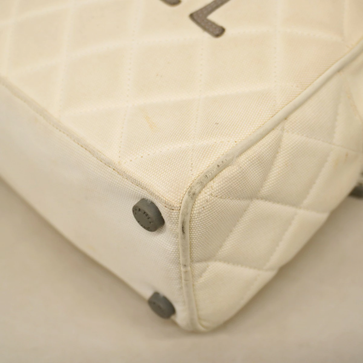 [5oc1400] Chanel Sport Canvas Handbag in White with Silver Hardware [Pre-owned] Women's