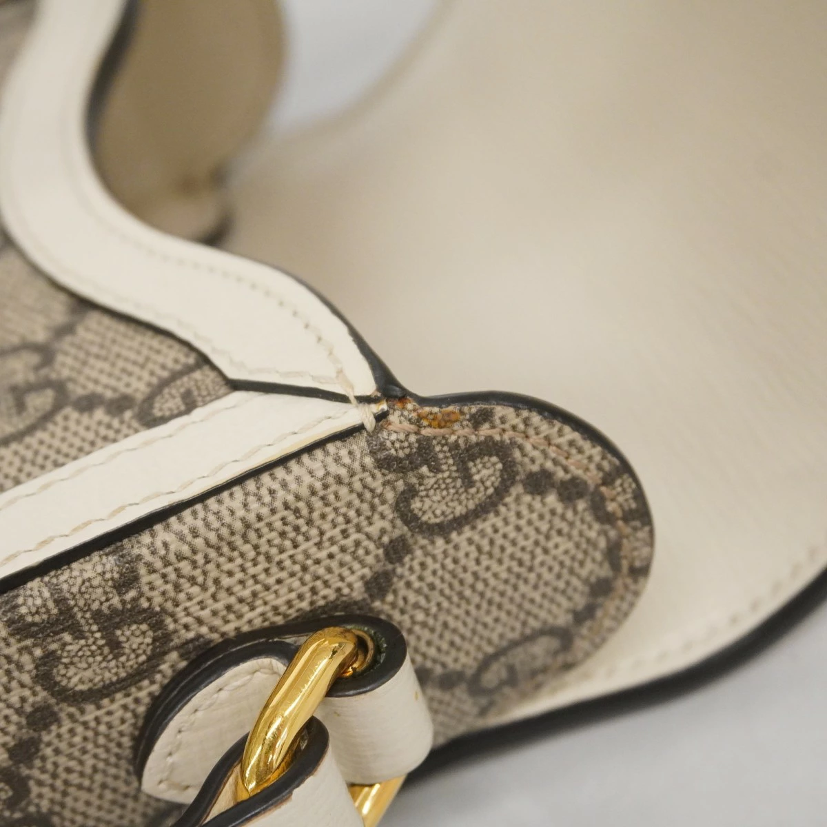 [5oc1645] Gucci GG Supreme Horsebit Shoulder Bag 625615, PVC Leather, Brown, White, Gold Hardware, Pre-owned, Women's