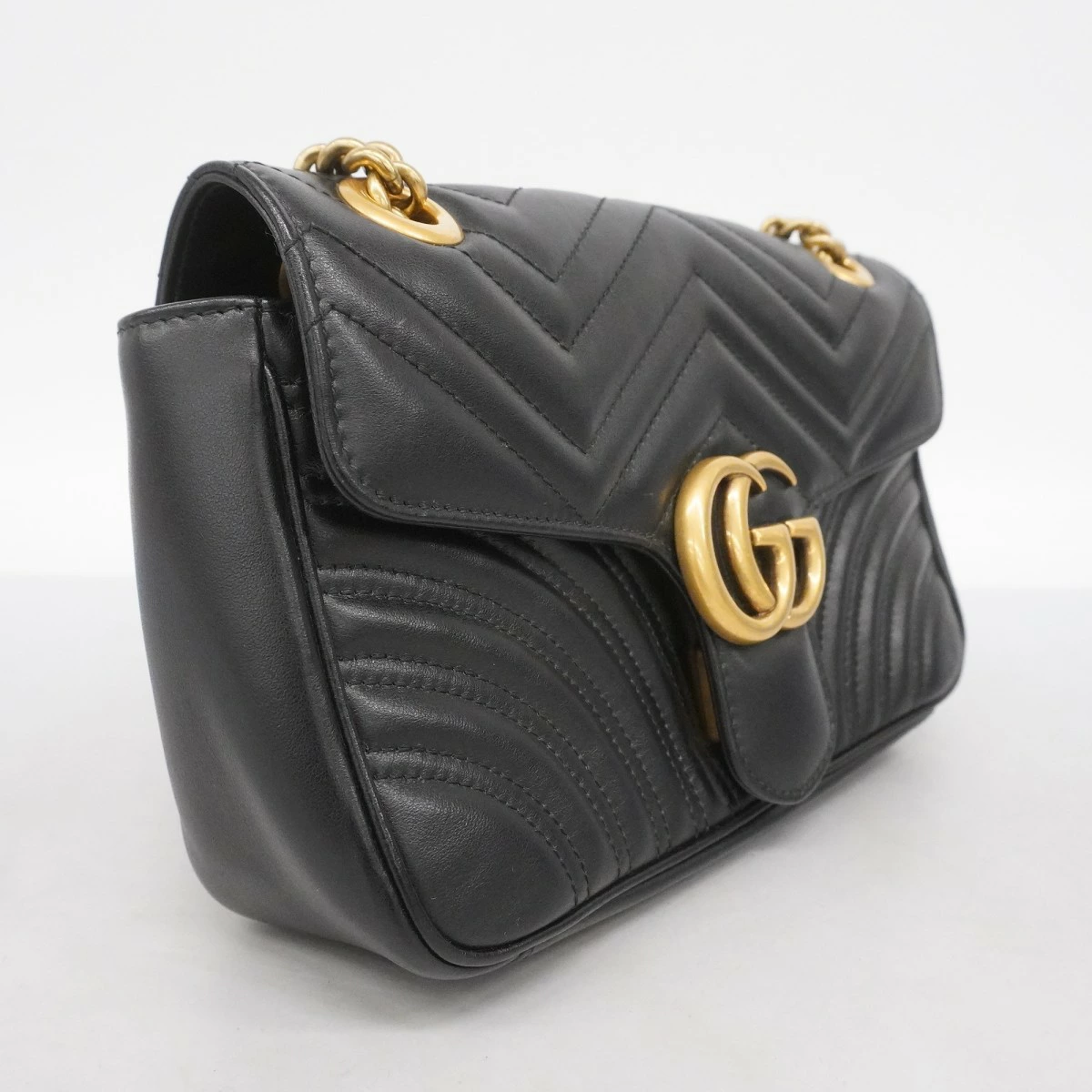 【5oc1730】グッチ ショルダーバッグ GGマーモント 443497 レザー ブラック ゴールド金具【中古】レディース