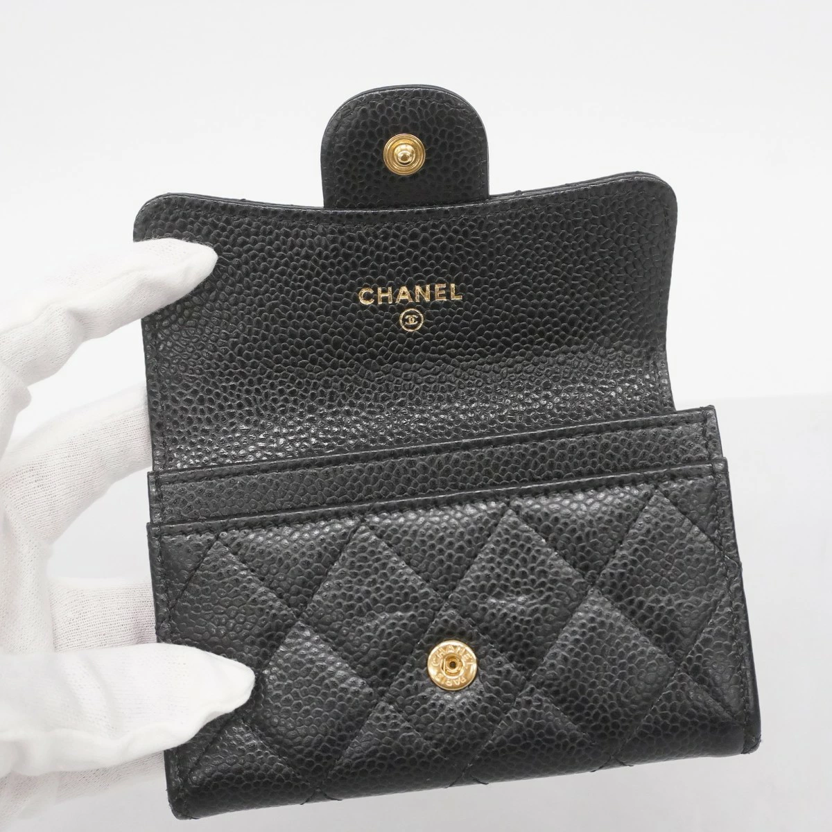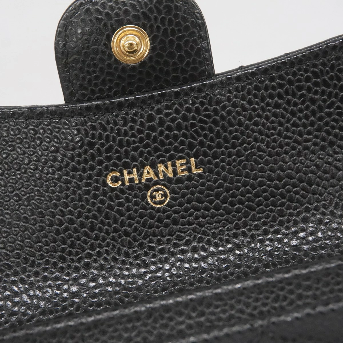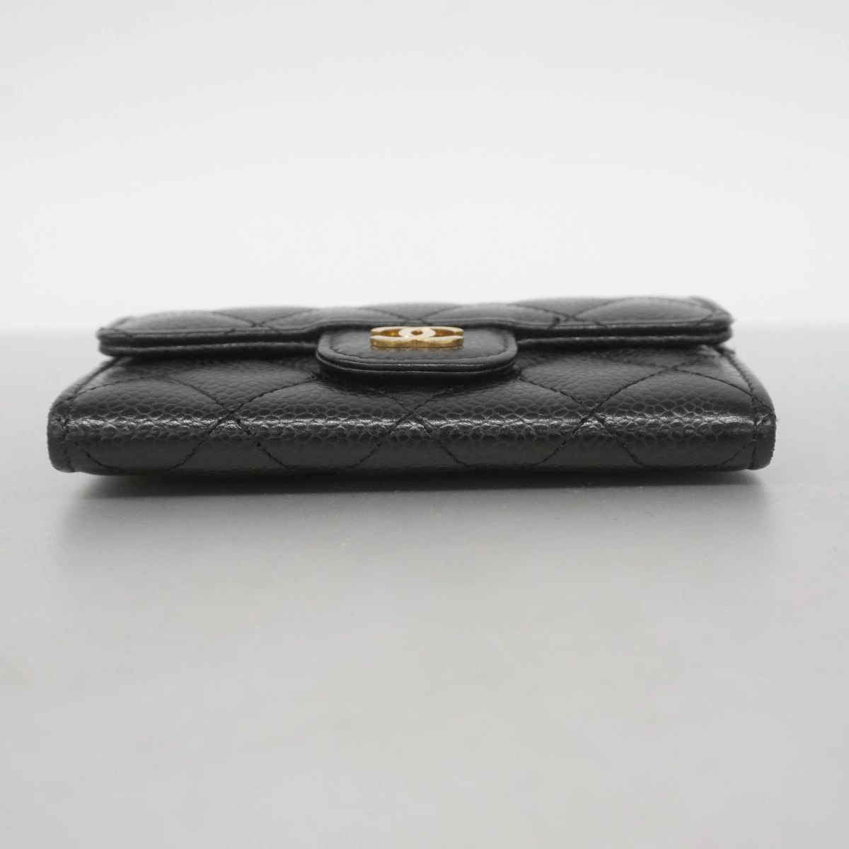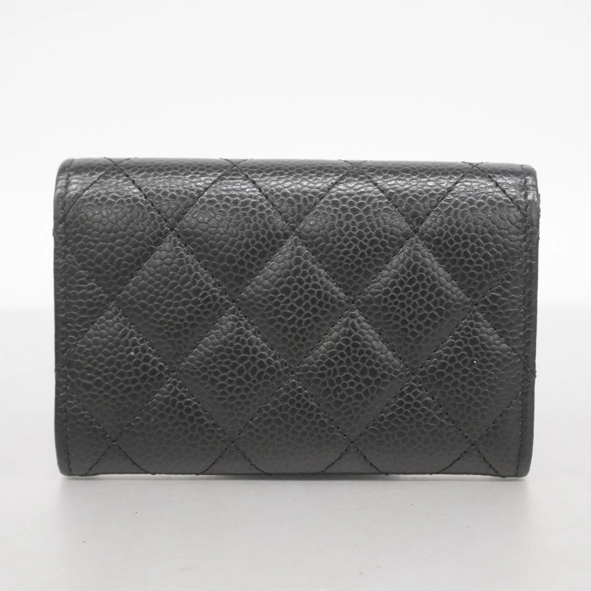 【5oc1780】シャネル 名刺入れ マトラッセ キャビアスキン ブラック ゴールド金具【中古】レディース