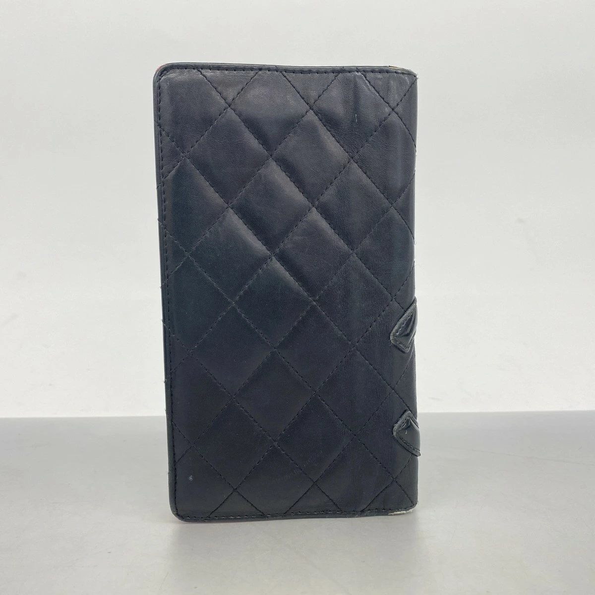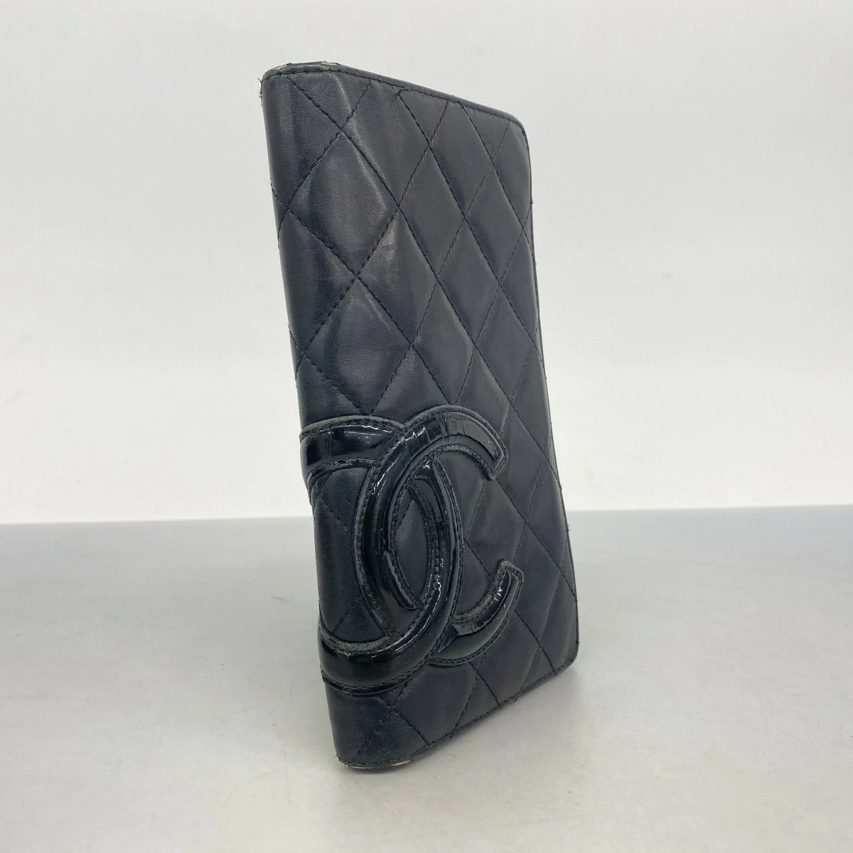 ★SALE【5oc1840-h】シャネル 長財布 カンボン ラムスキン ブラック シルバー金具【中古】レディース
