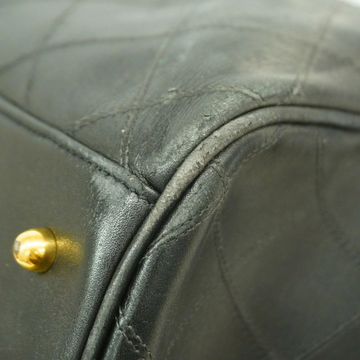 [5oc2231-h] Chanel Boston Bag, Bicolore Leather, Black with Gold Hardware, Pre-owned, Women's