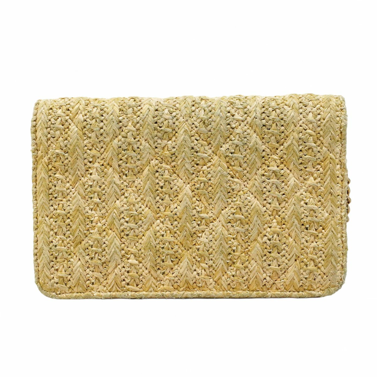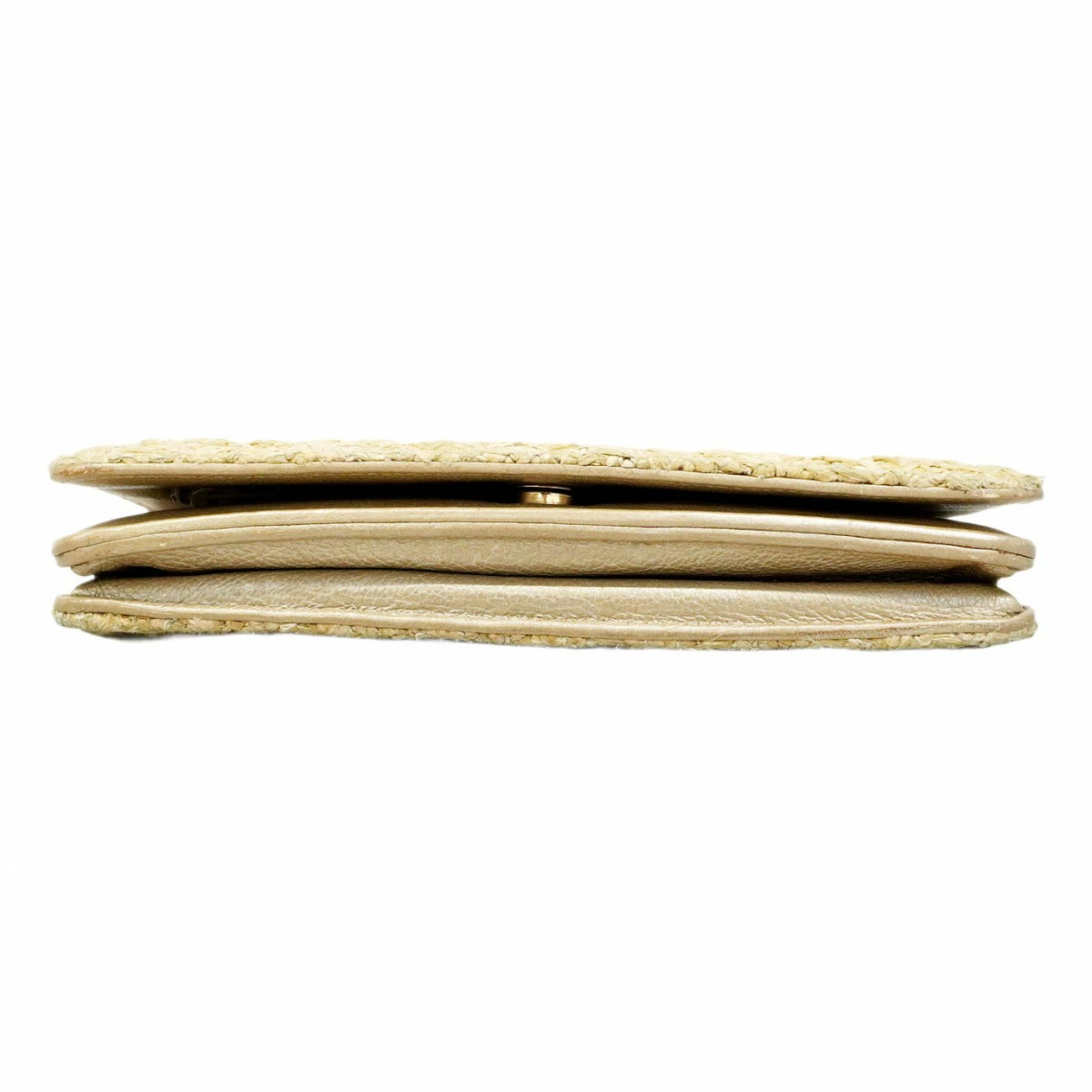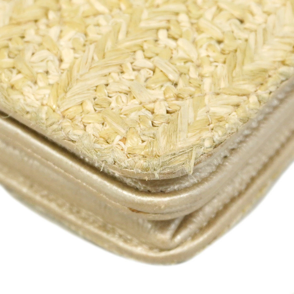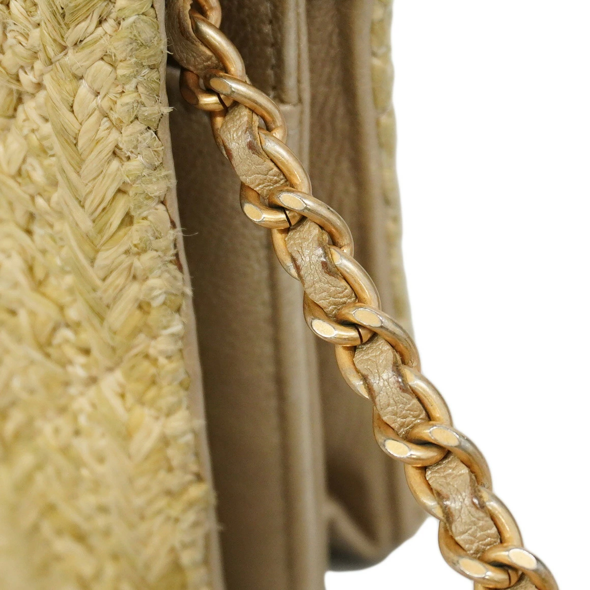 ★SALE【5oc2352-h】シャネル ショルダーウォレット チェーンショルダー ラフィア ベージュ ゴールド金具【中古】レディース