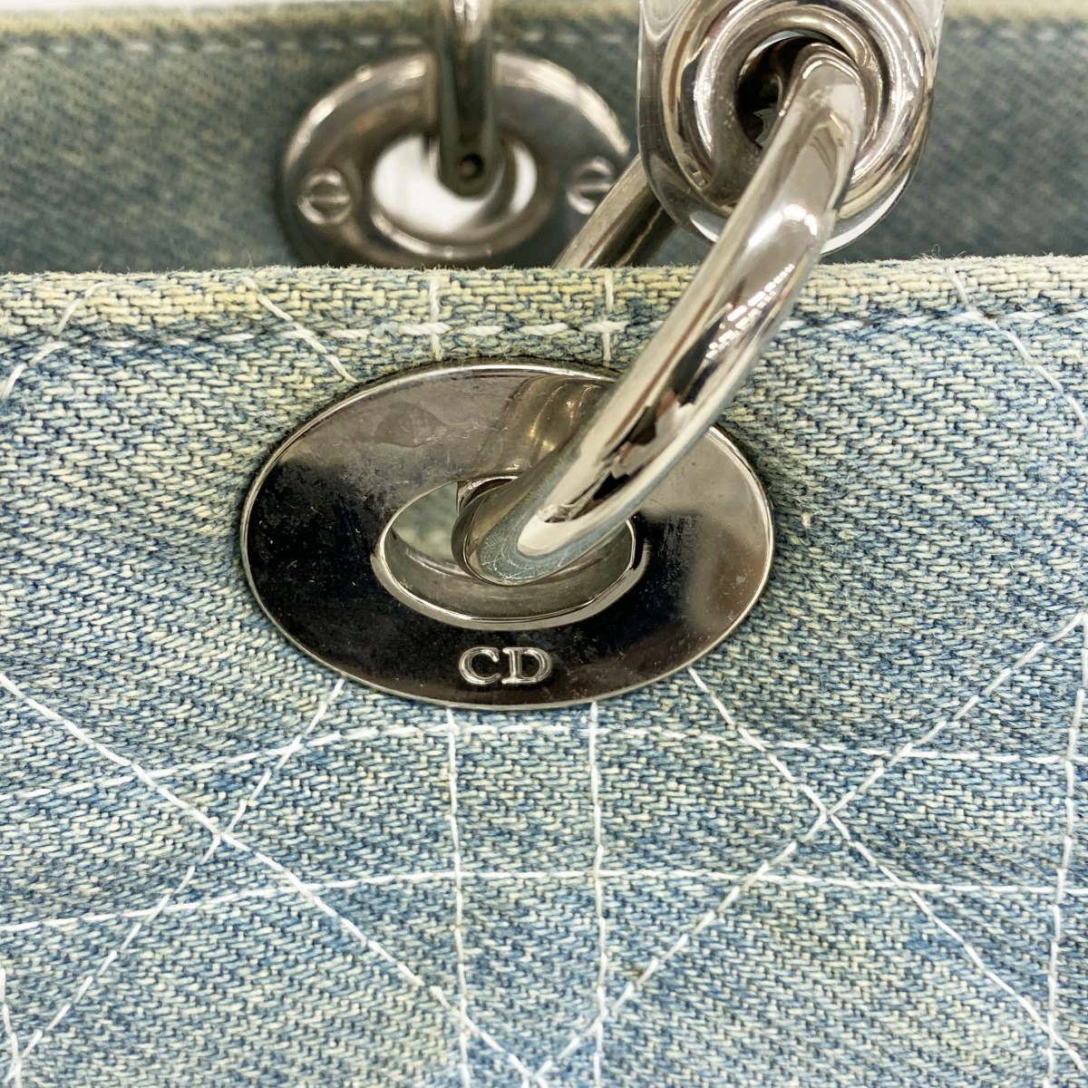★SALE【5oc2417】クリスチャンディオール ハンドバッグ カナージュ レディディオール デニム ブルー シルバー金具 2wayバッグ【中古】レディース