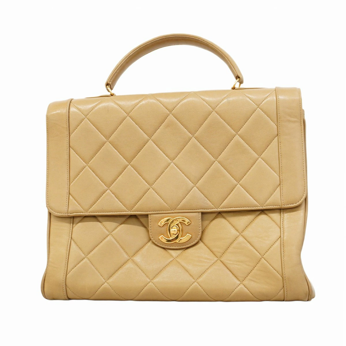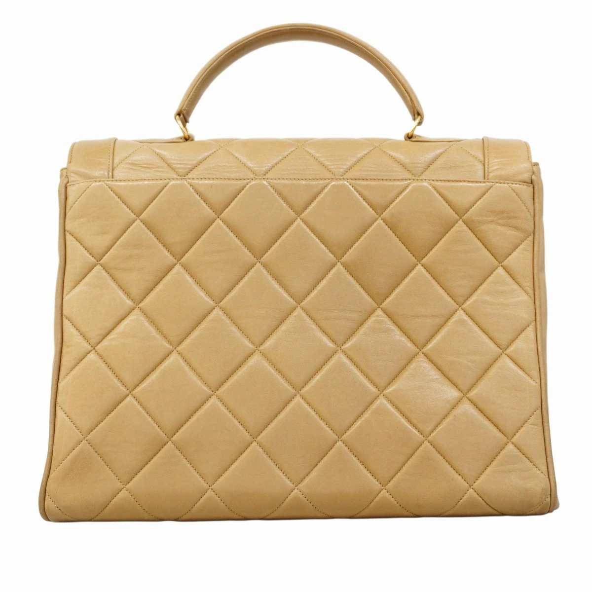 【5oc2679-h】シャネル ハンドバッグ マトラッセ トップハンドル ラムスキン ベージュ ゴールド金具【中古】レディース