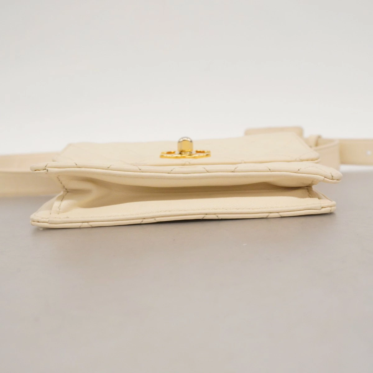 [5oc2944] Chanel Matelasse Waist Bag, Ivory Lambskin, Gold Hardware [Pre-owned] Women's