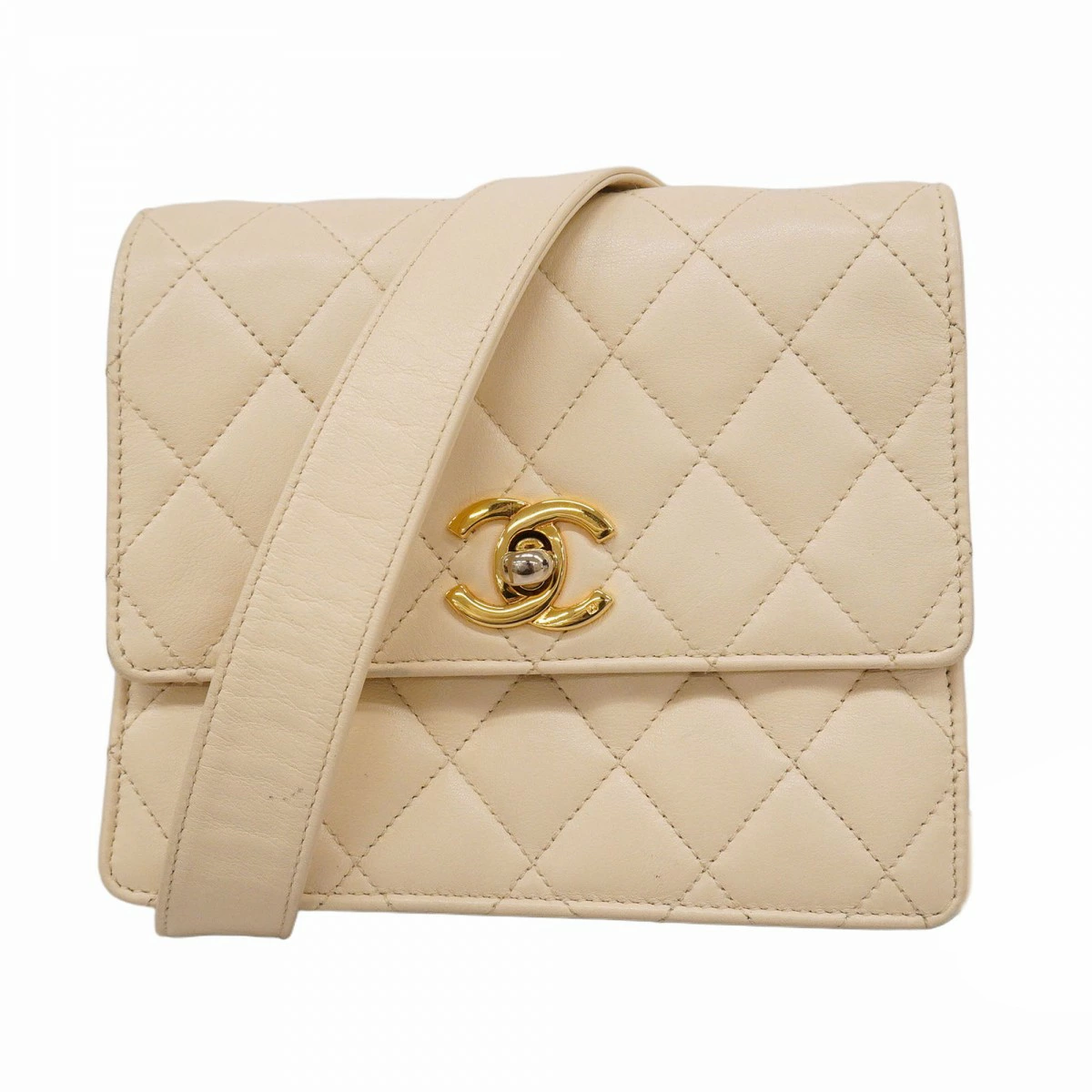 【5oc2944】シャネル ウエストバッグ マトラッセ ラムスキン アイボリー ゴールド金具【中古】レディース