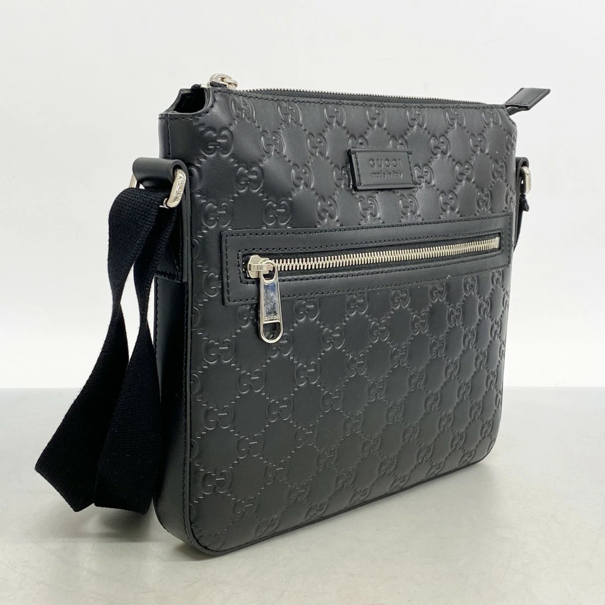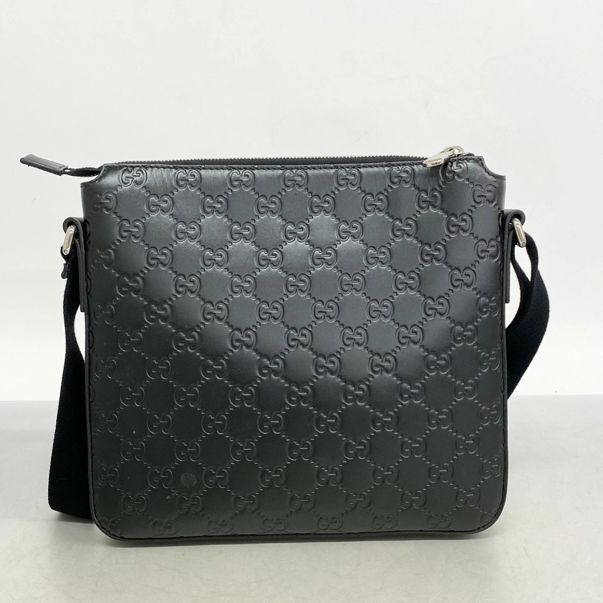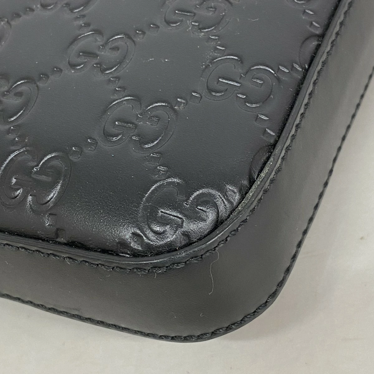 【5od2978】グッチ ショルダーバッグ グッチシマ 406410 レザー ブラック シルバー金具【中古】メンズ
