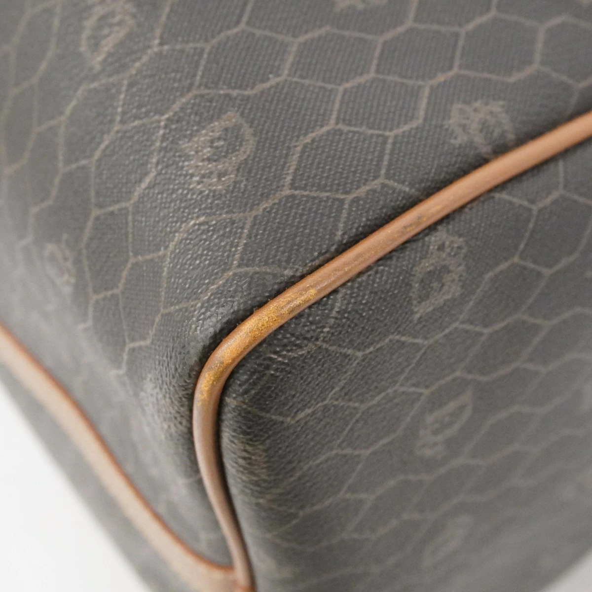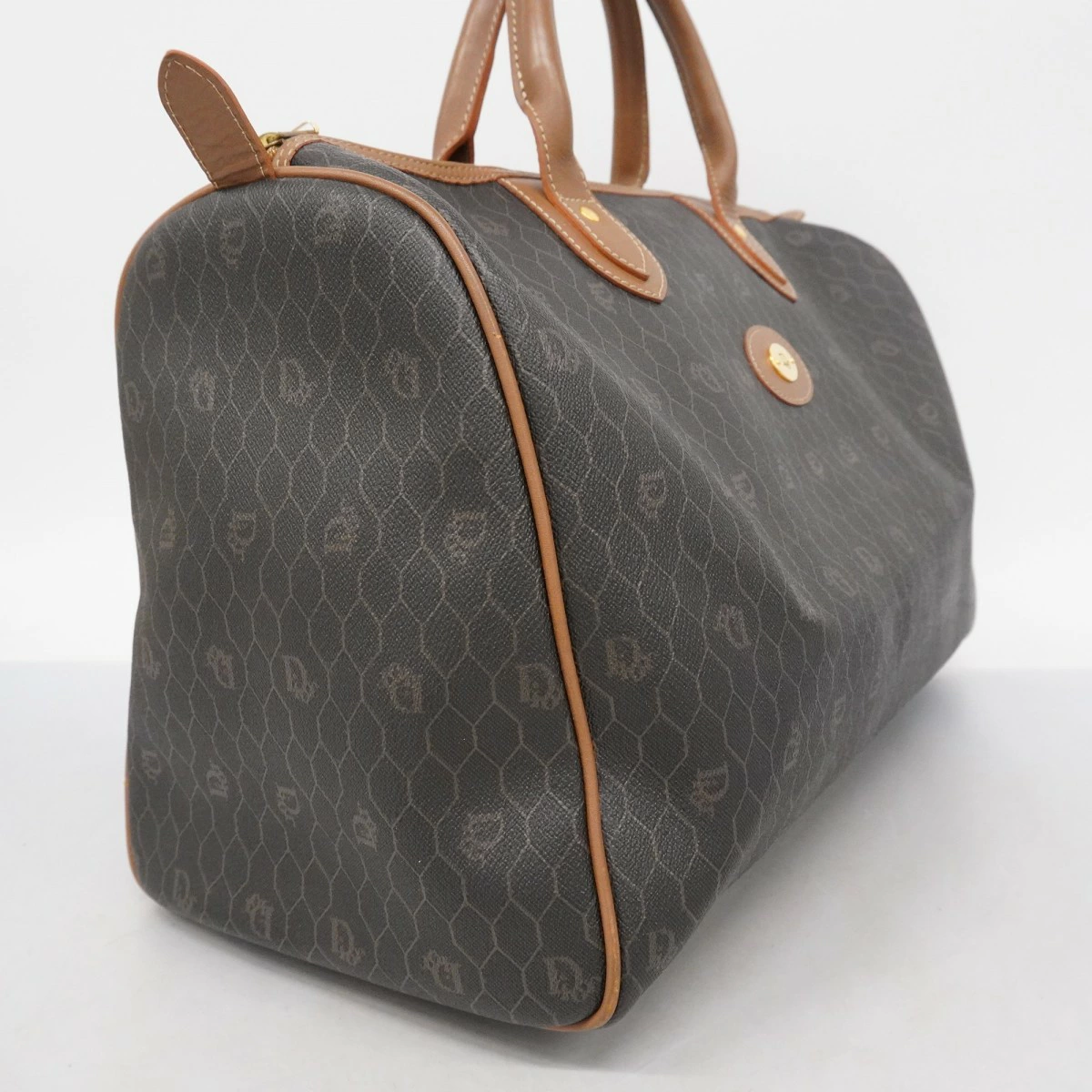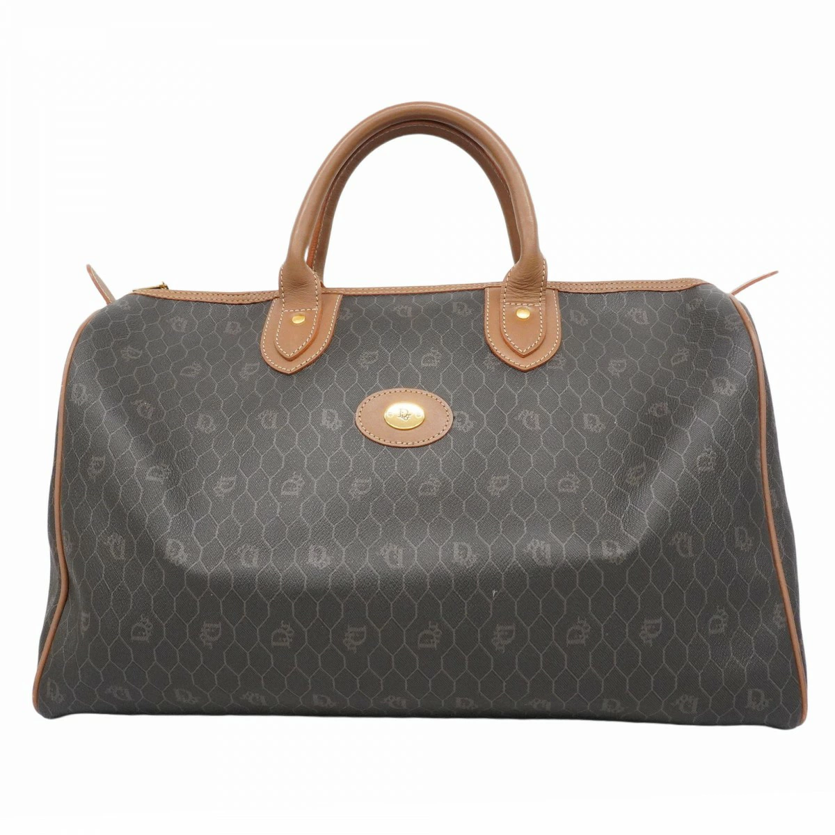 【5od3049】クリスチャンディオール ボストンバッグ ハニカム PVC グレー ブラウン ゴールド金具【中古】メンズ レディース ユニセックス
