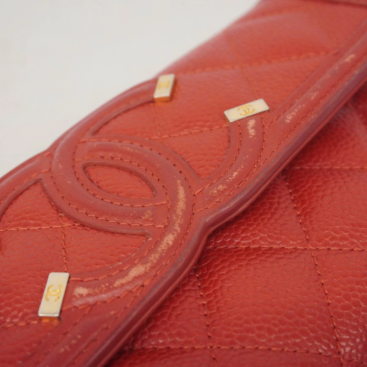 【5od3058】シャネル 長財布 CCフィリグリー キャビアスキン レッド ゴールド金具【中古】レディース
