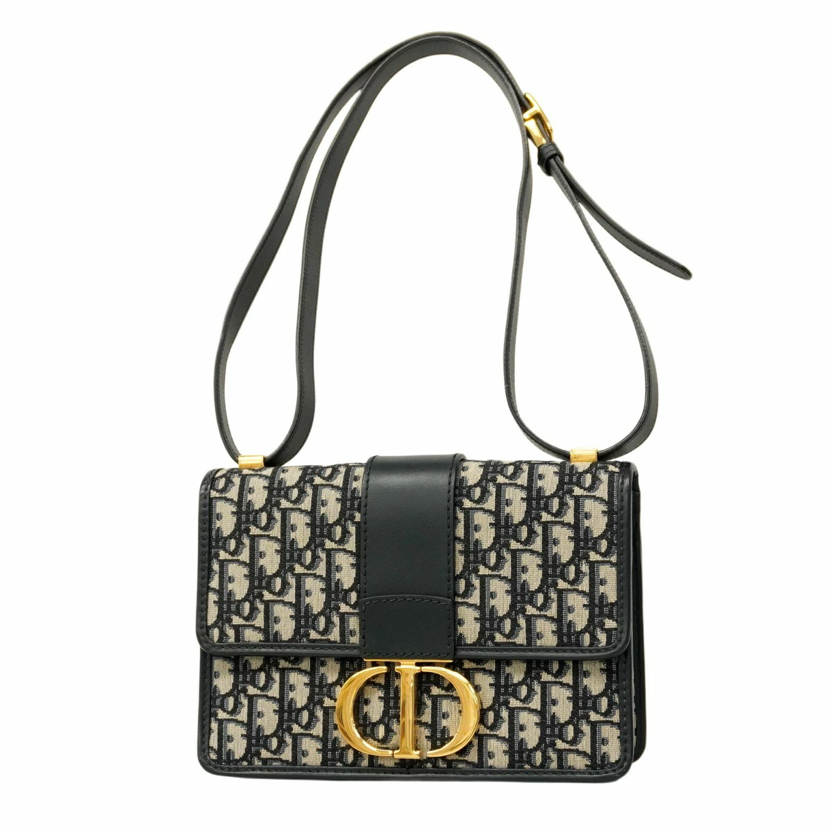 【5od3257-h】クリスチャンディオール ショルダーバッグ オブリーク 30モンテーニュ キャンバス レザー ネイビー ゴールド金具【中古】レディース