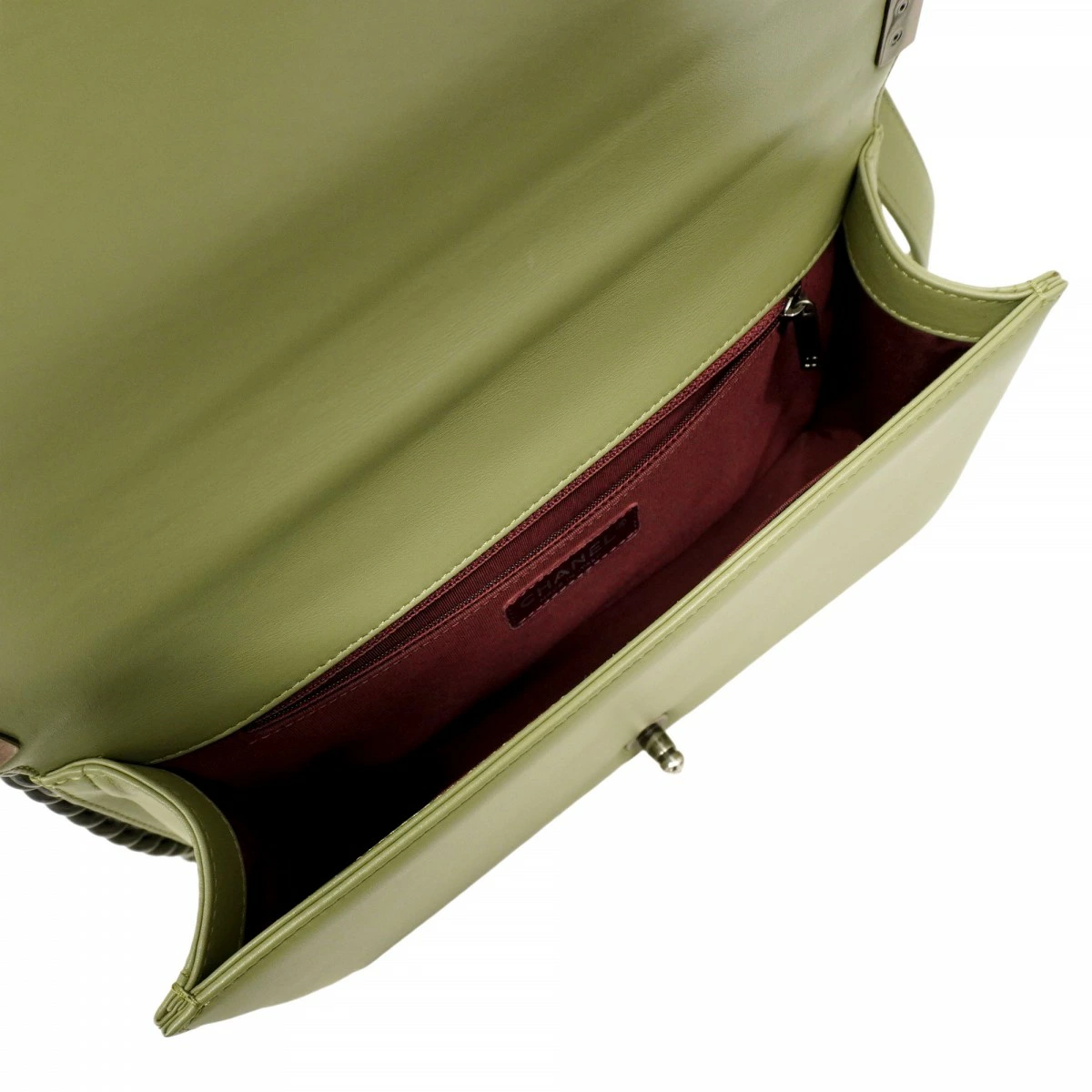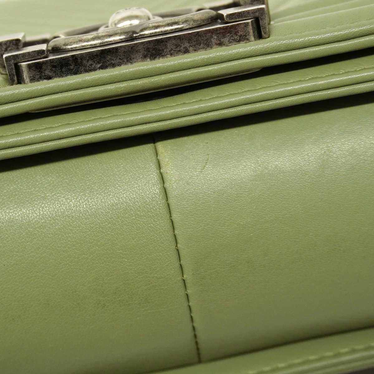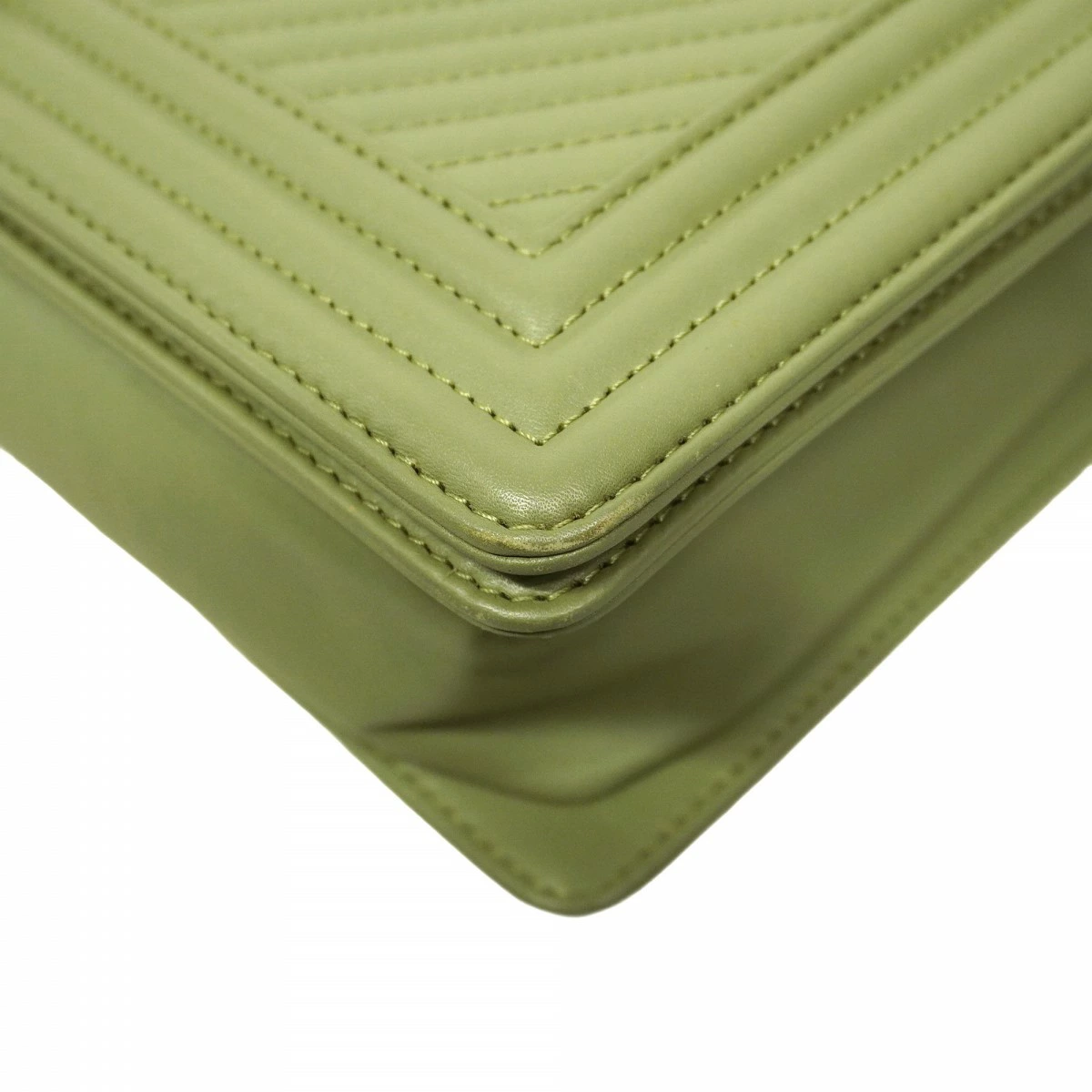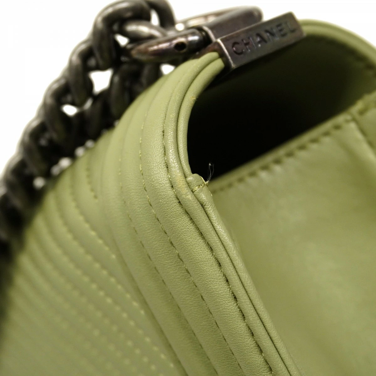 【5od3258-h】シャネル ショルダーバッグ ボーイシャネル/Vステッチ チェーンショルダー ラムスキン グリーン シルバー金具【中古】レディース