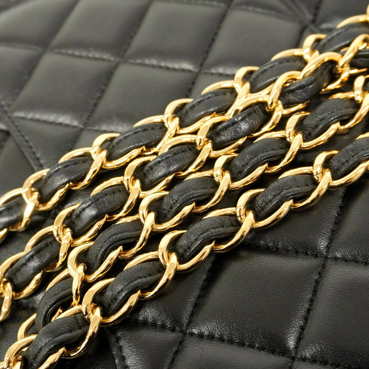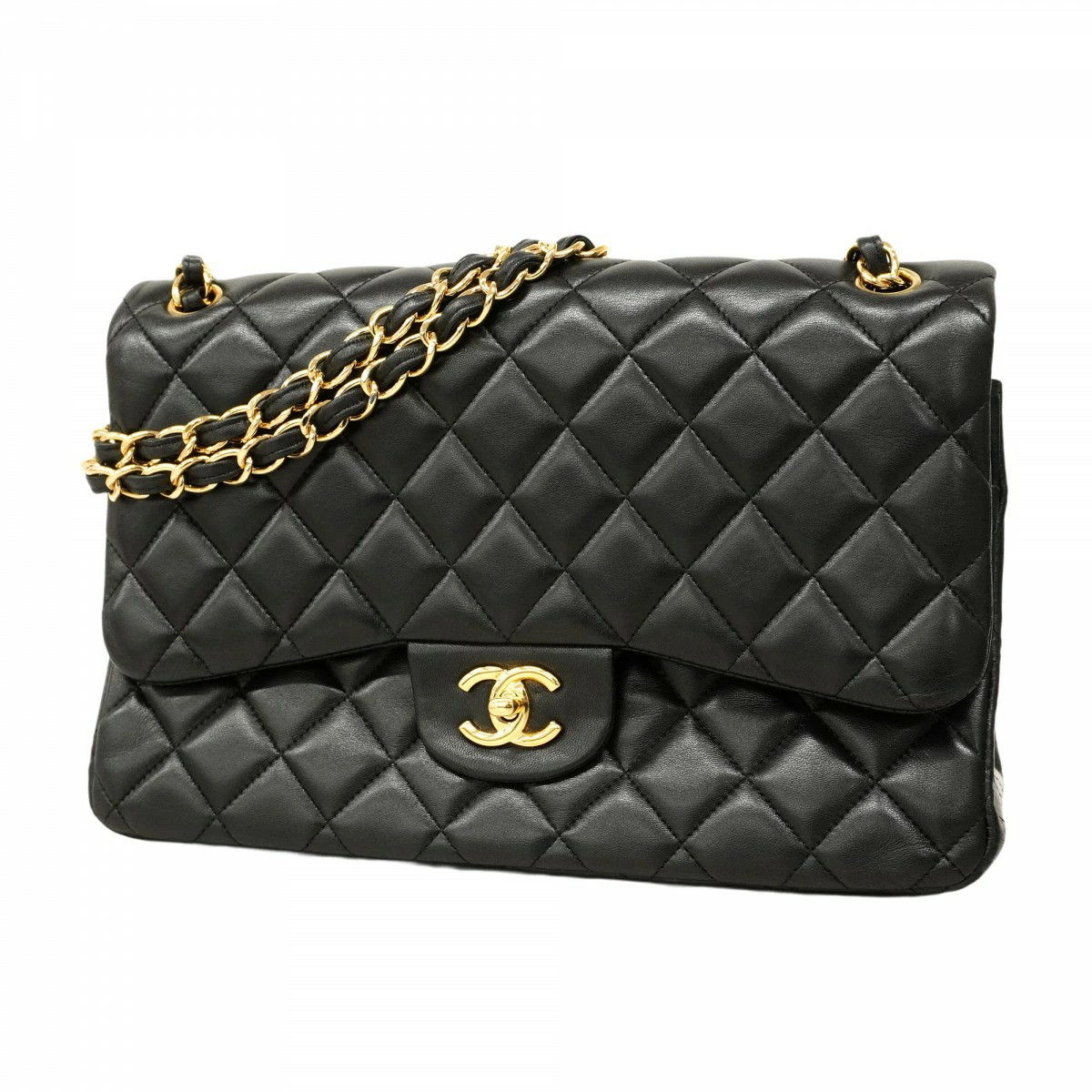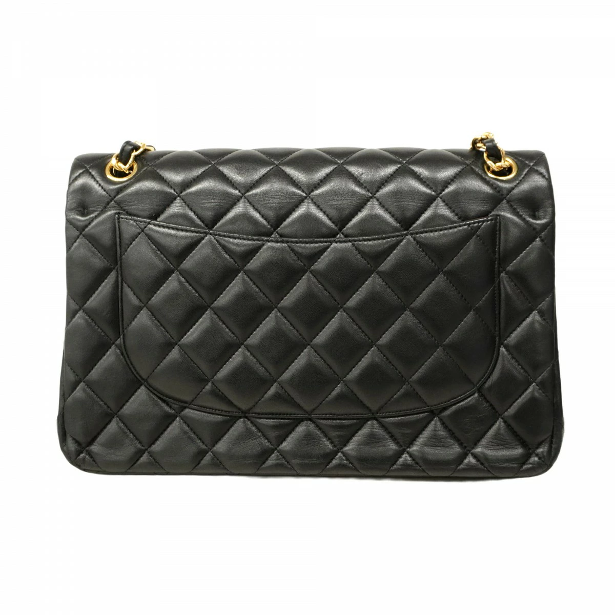 【5od3269-h】シャネル ショルダーバッグ デカマトラッセ Wフラップ Wチェーン ラムスキン ブラック ゴールド金具【中古】レディース