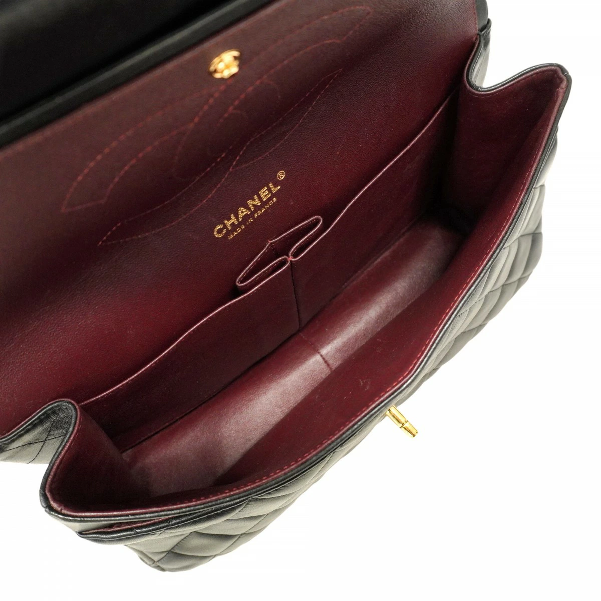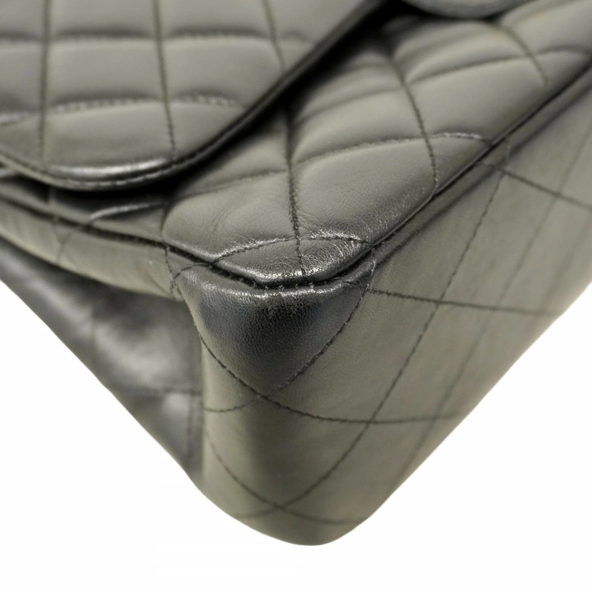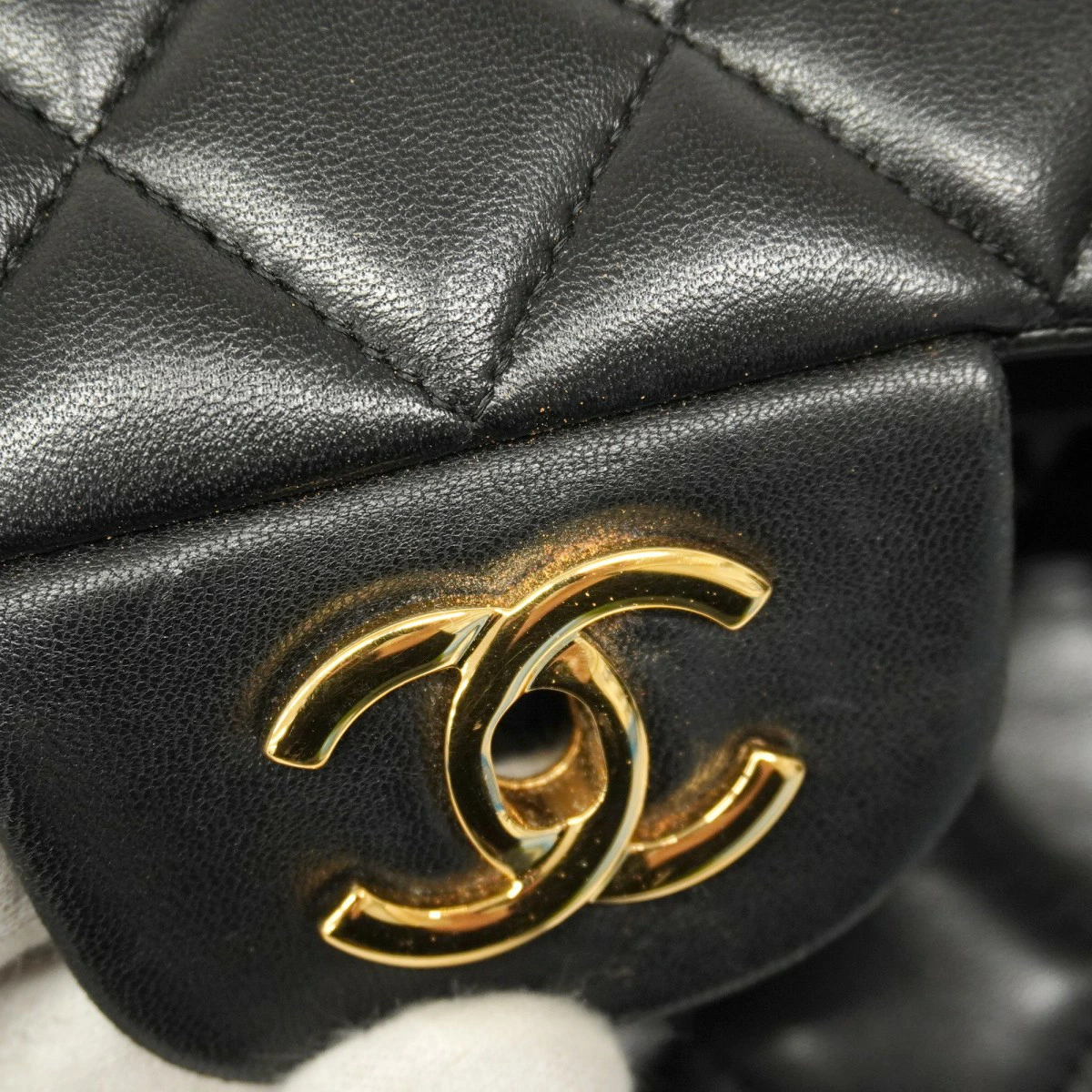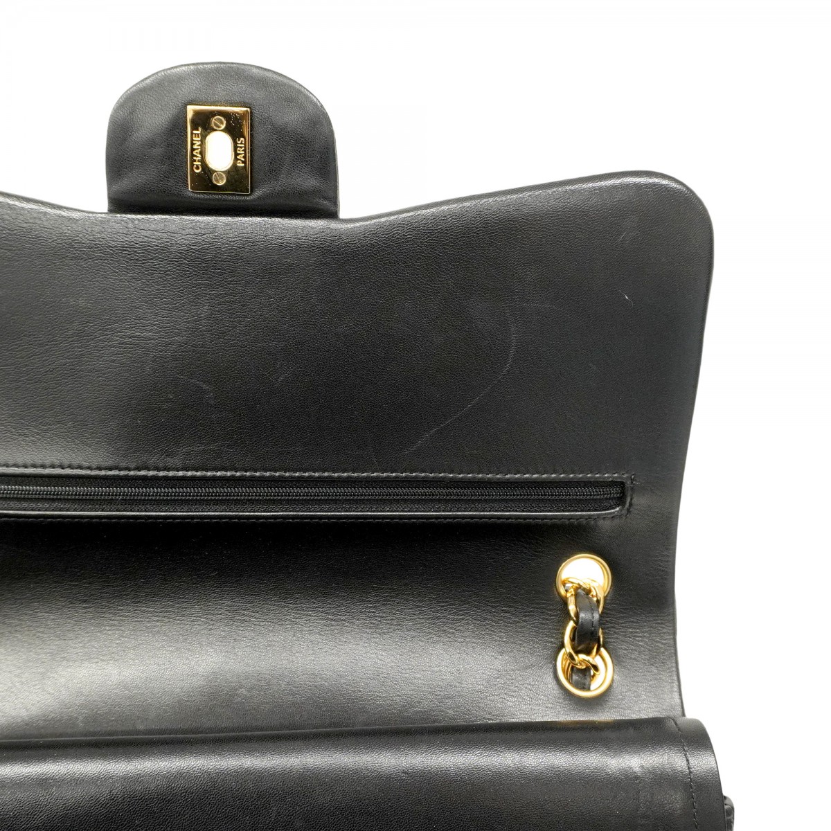 【5od3269-h】シャネル ショルダーバッグ デカマトラッセ Wフラップ Wチェーン ラムスキン ブラック ゴールド金具【中古】レディース