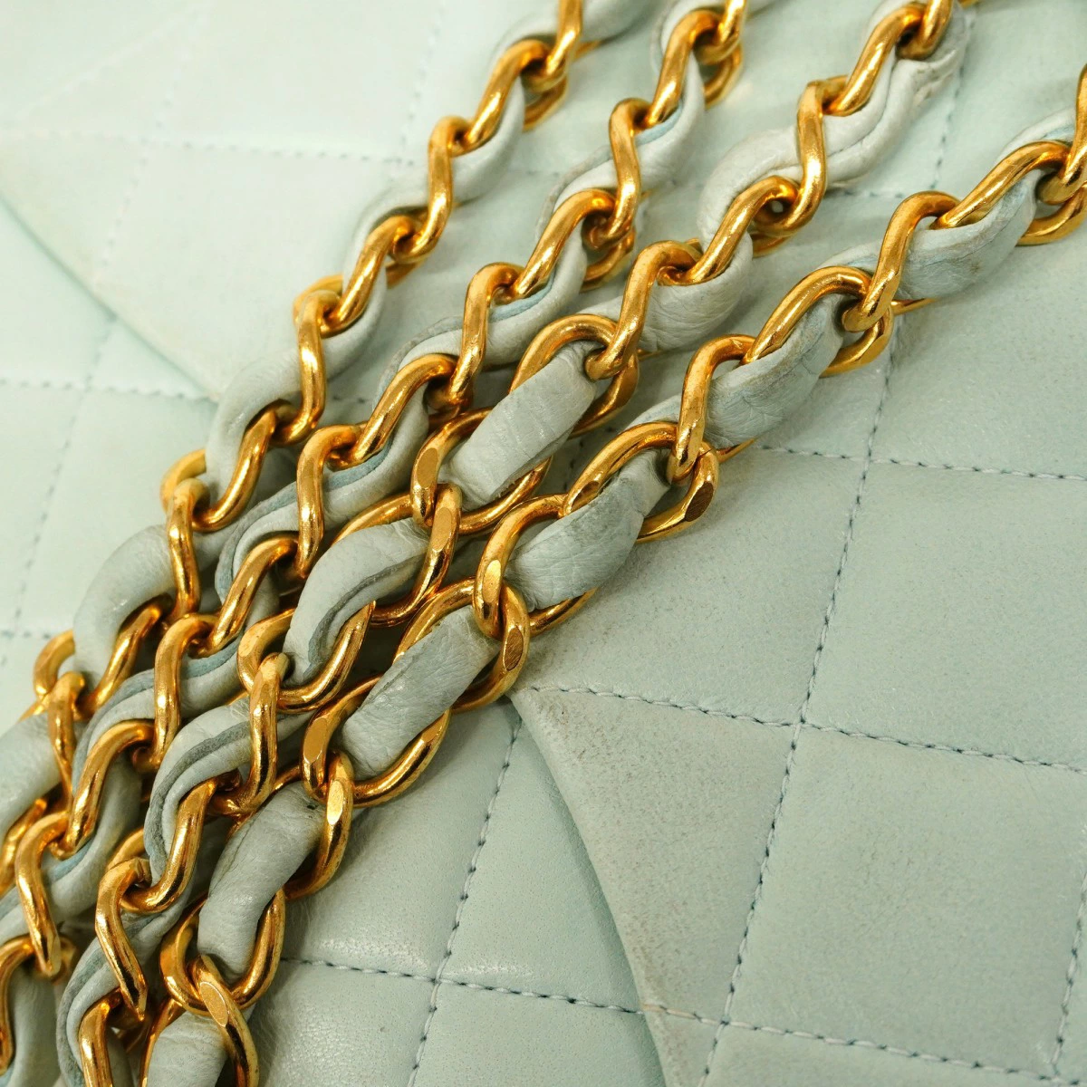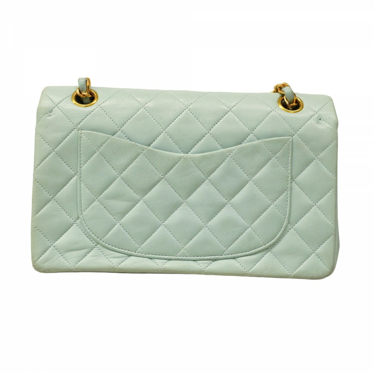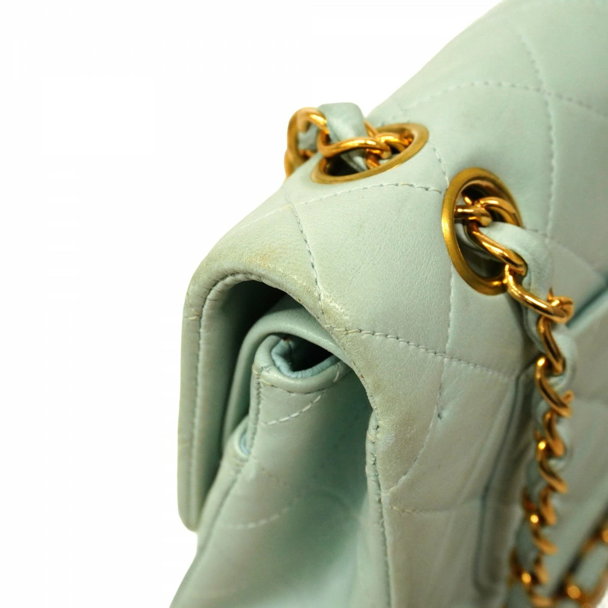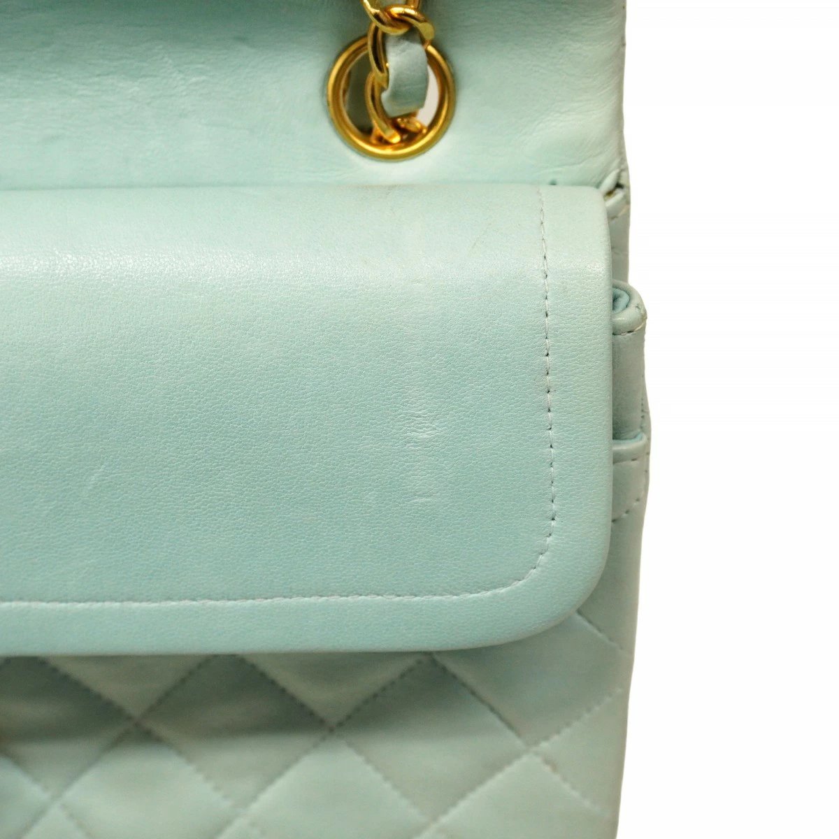【5od3298-h】シャネル ショルダーバッグ マトラッセ Wフラップ Wチェーン ラムスキン グリーン ゴールド金具【中古】レディース