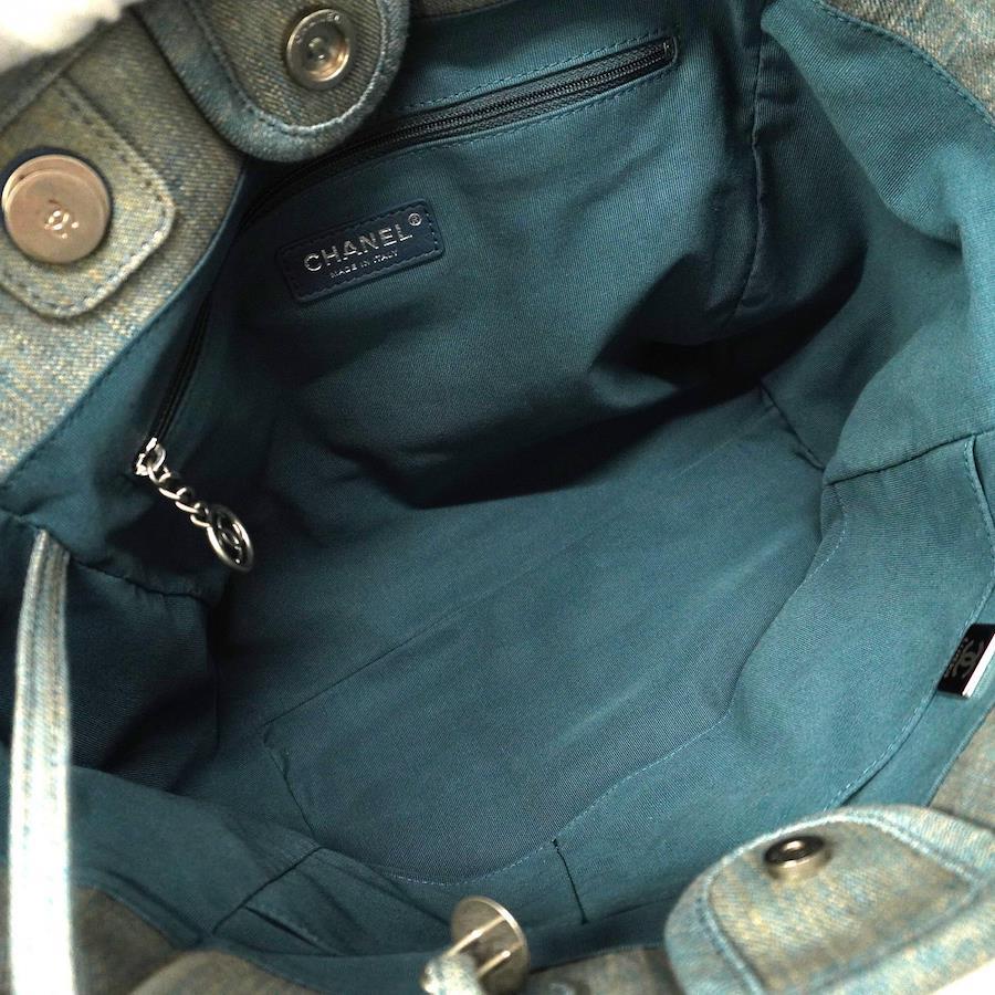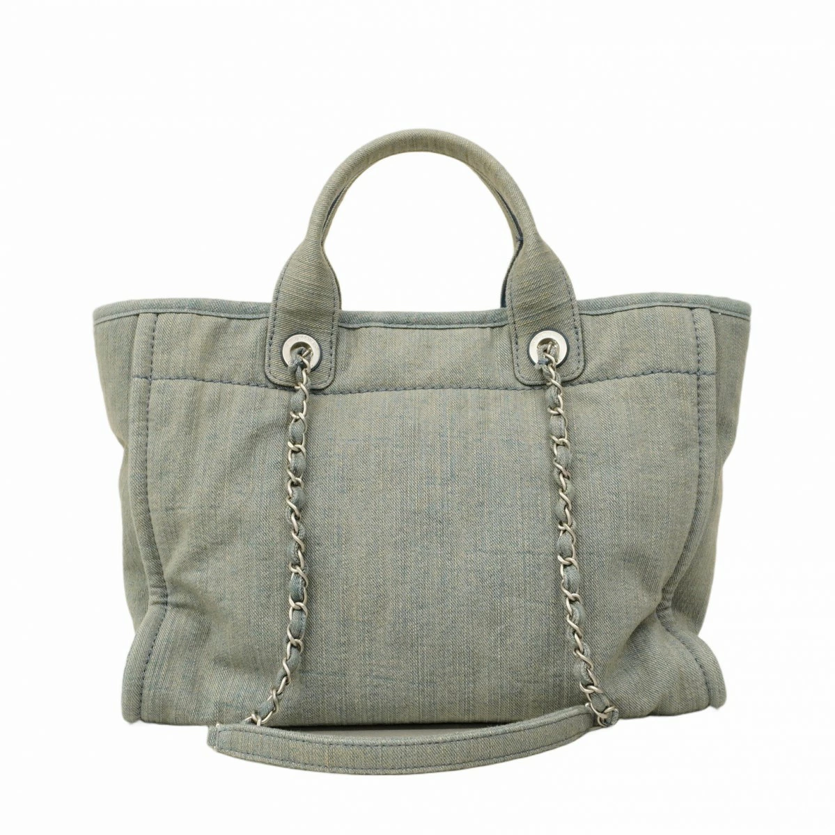 [5od3309-h] Chanel Deauville Denim Tote Bag with Blue Chain and Silver Hardware [Pre-owned] Women's