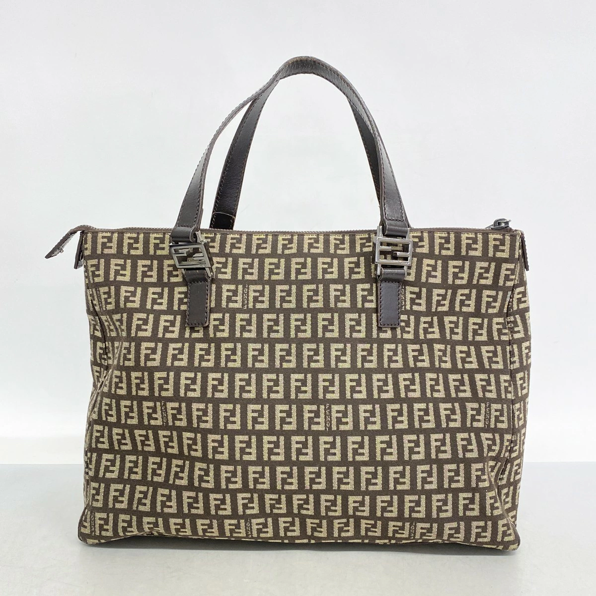 ★最終価格★SALE【5od3618】フェンディ トートバッグ ズッキーノ ナイロンキャンバス ブラウン シルバー金具【中古】レディース