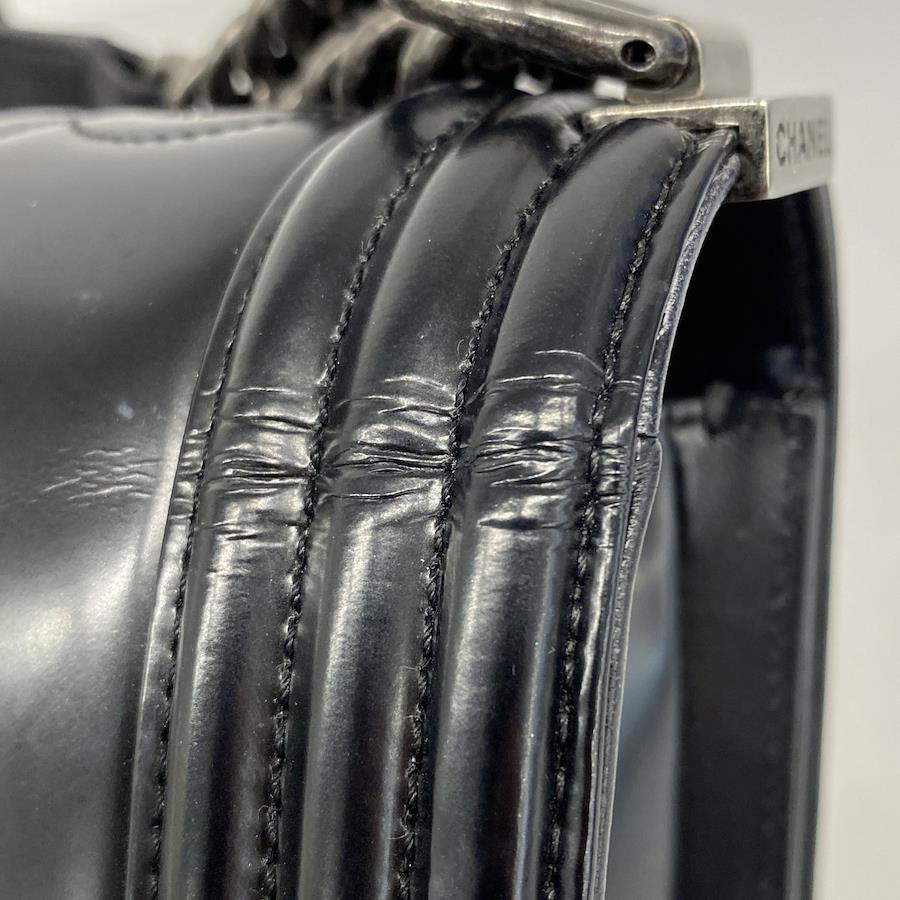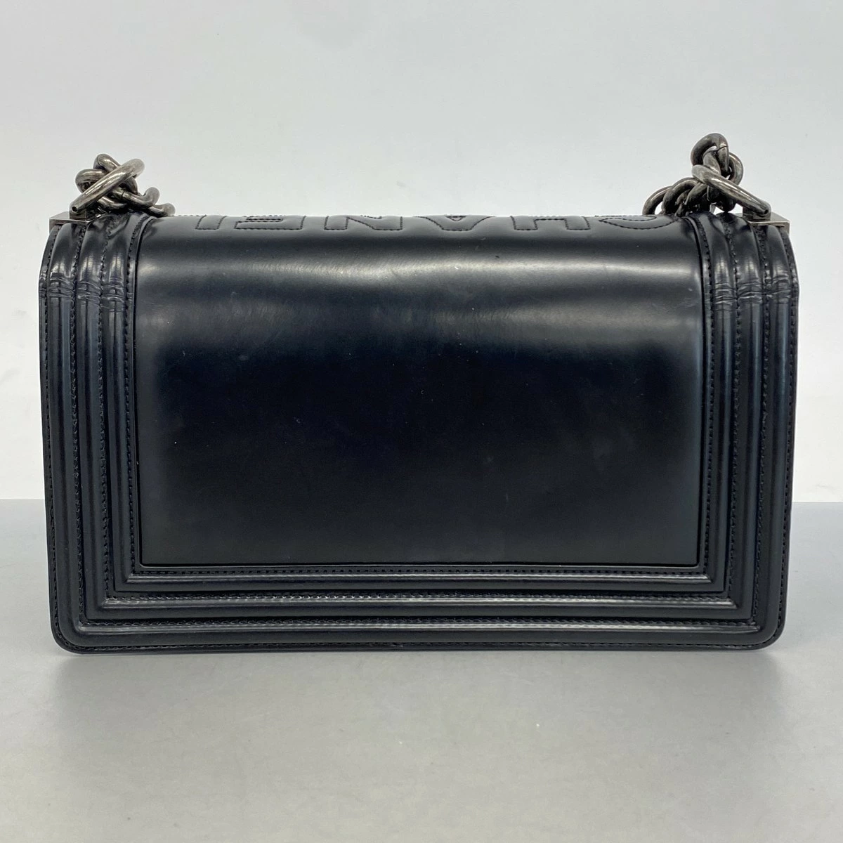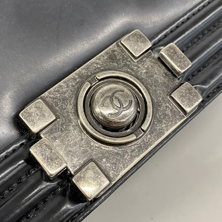 【5od3866】シャネル ショルダーバッグ ボーイシャネル チェーンショルダー カーフスキン ブラック シルバー金具【中古】レディース