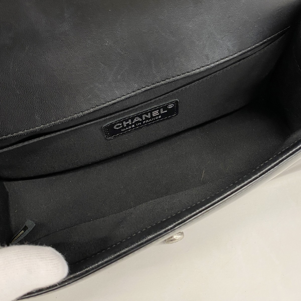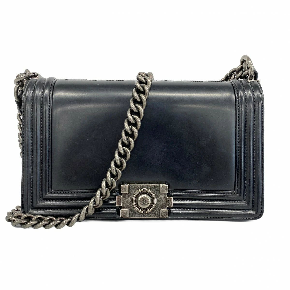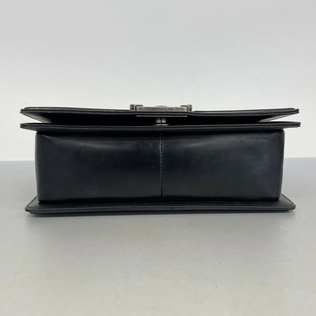 【5od3866】シャネル ショルダーバッグ ボーイシャネル チェーンショルダー カーフスキン ブラック シルバー金具【中古】レディース