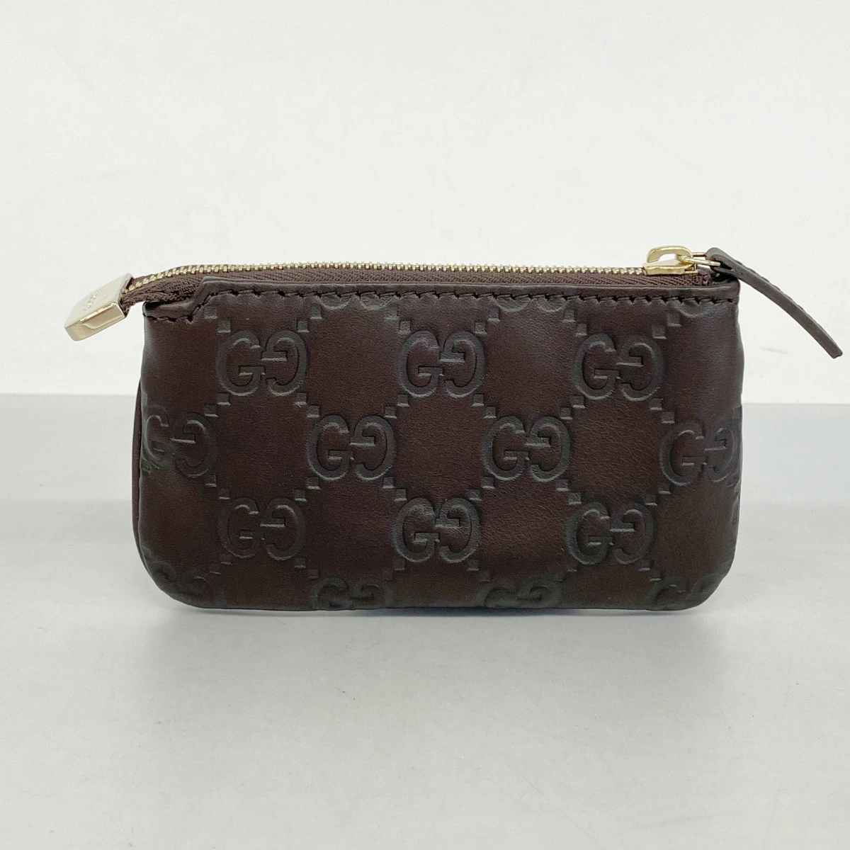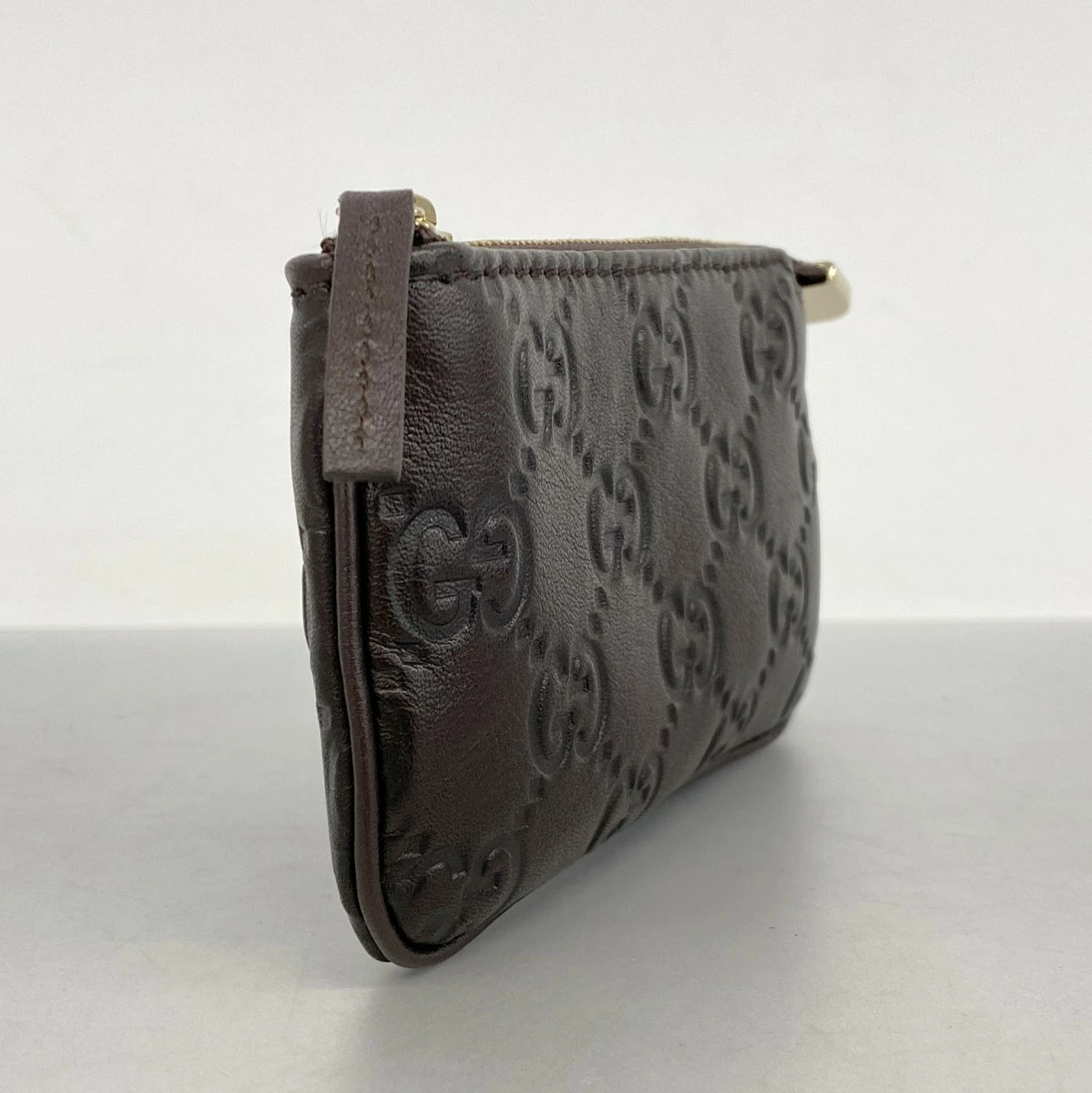 【5od3868】グッチ コインケース グッチシマ 233183 レザー ダークブラウン シャンパンゴールド金具【中古】メンズ レディース ユニセックス