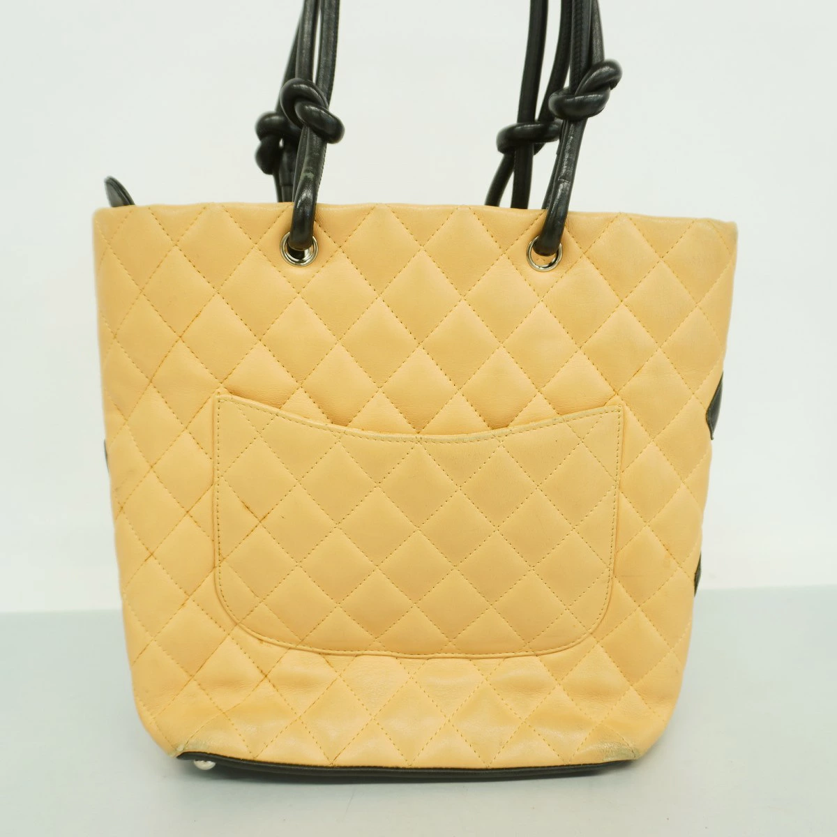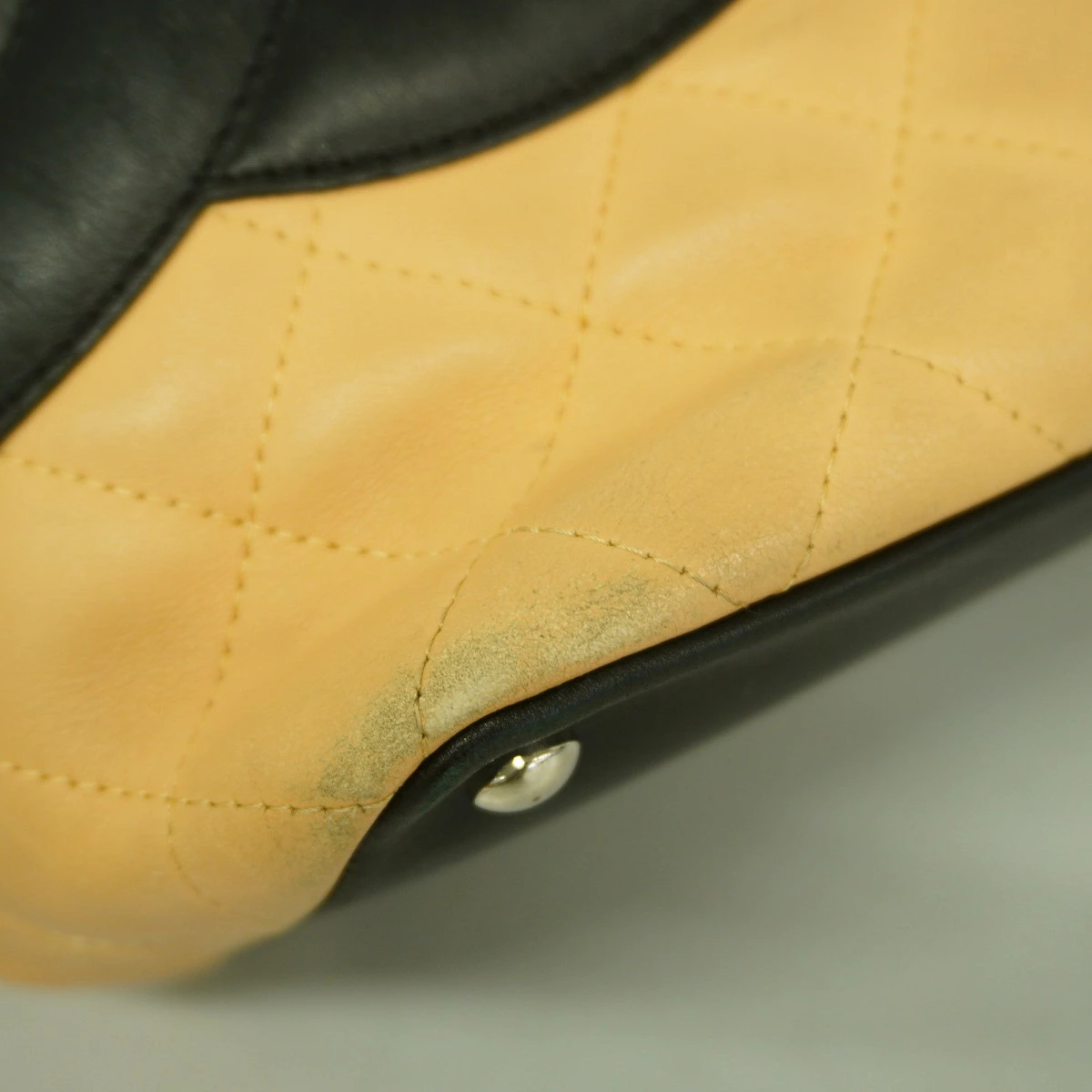 【5od3891-h】シャネル トートバッグ カンボン ラムスキン ベージュ ブラック シルバー金具【中古】レディース