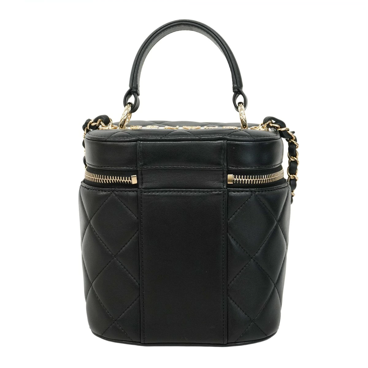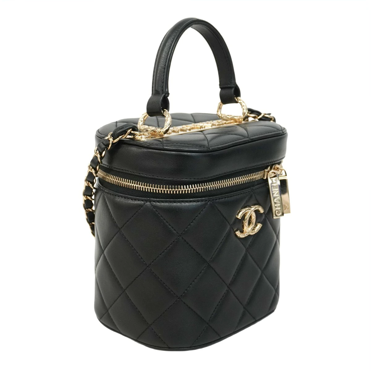 【5od3930-h】シャネル バニティバッグ マトラッセ チェーンショルダー ラムスキン ブラック ゴールド金具【中古】レディース