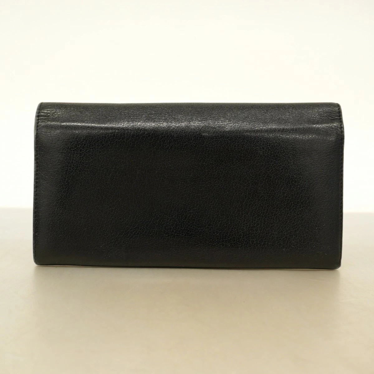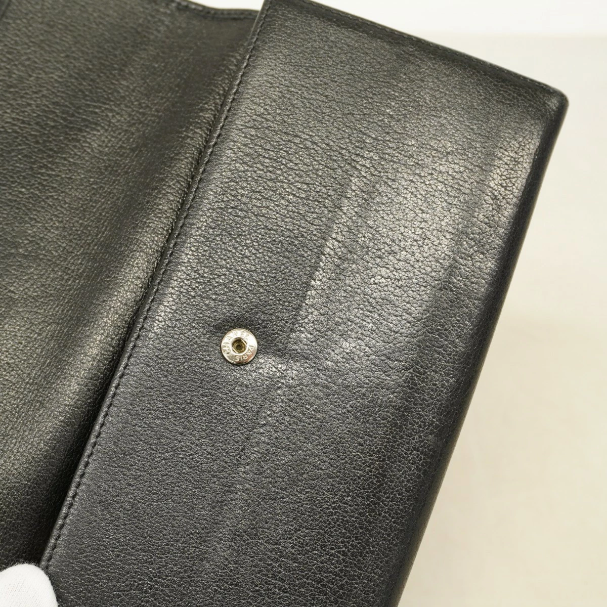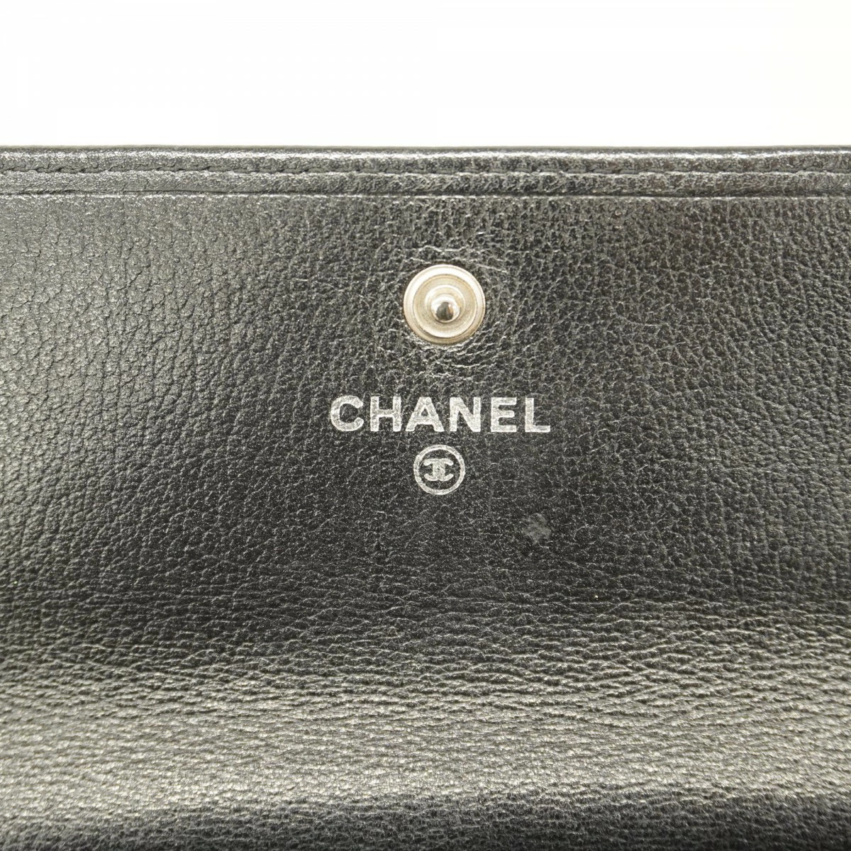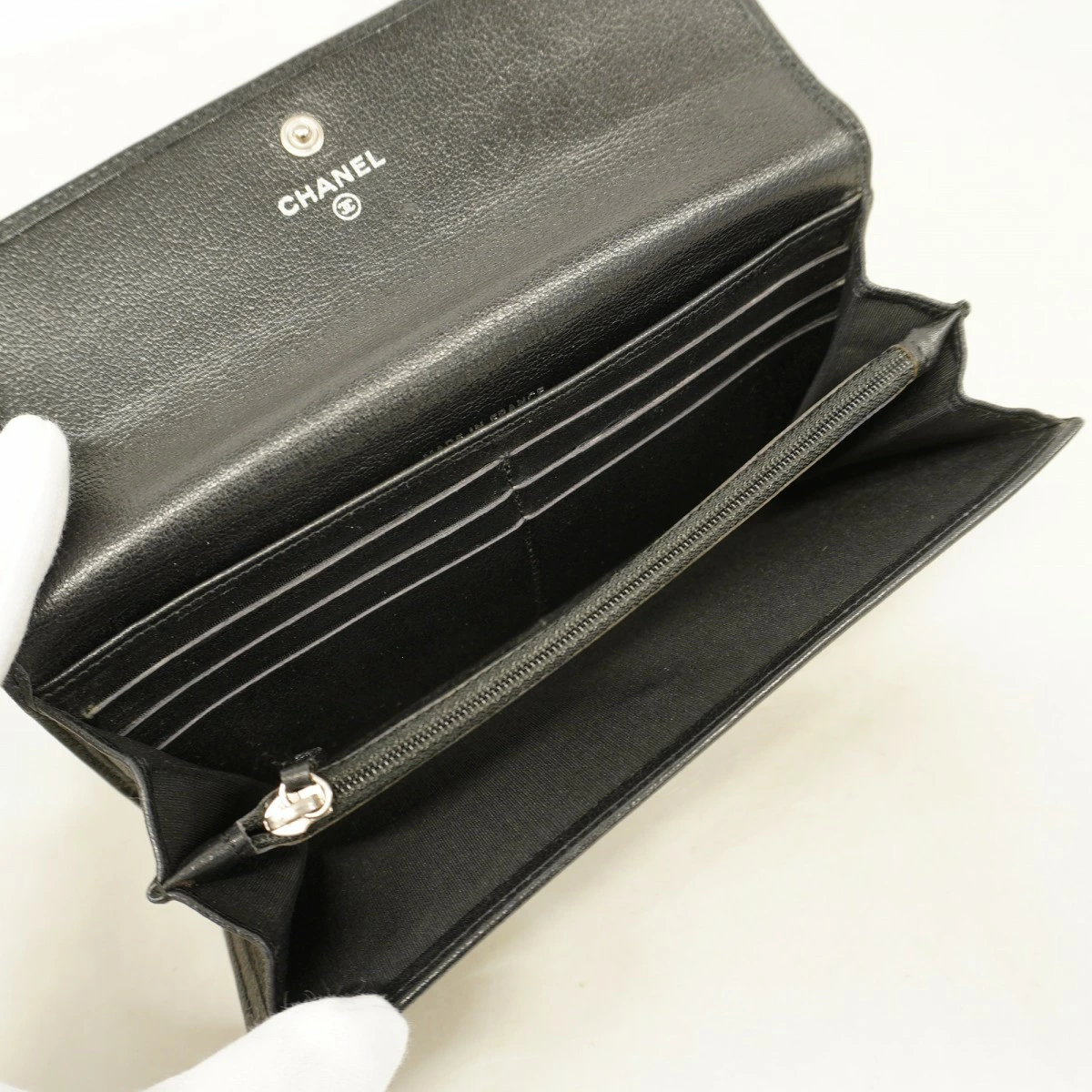 【5od4030】シャネル 長財布 カメリア レザー ブラック シルバー金具【中古】レディース