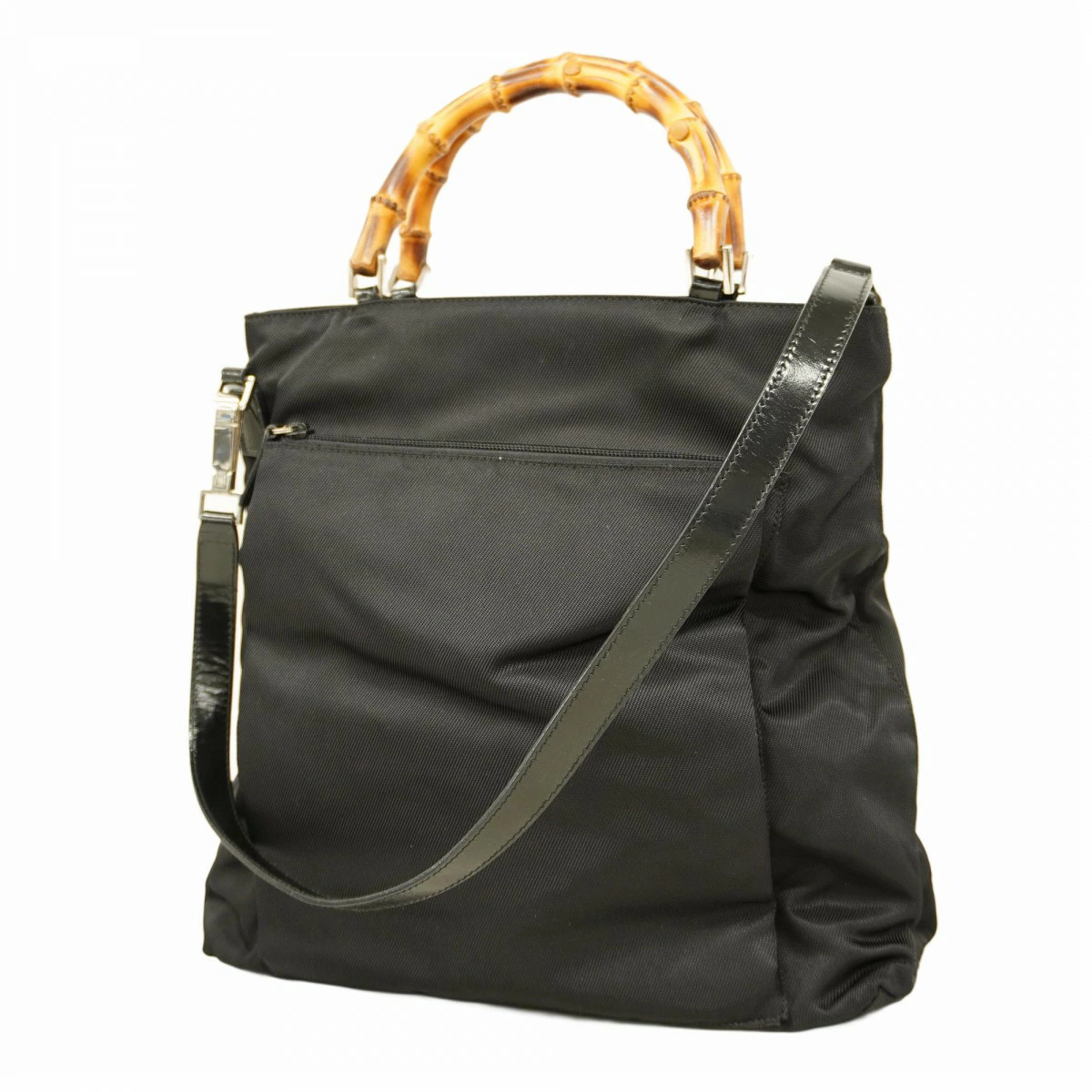 【5od4131】グッチ ハンドバッグ バンブー 002 2122 ナイロン ブラック シルバー金具 2wayバッグ【中古】レディース