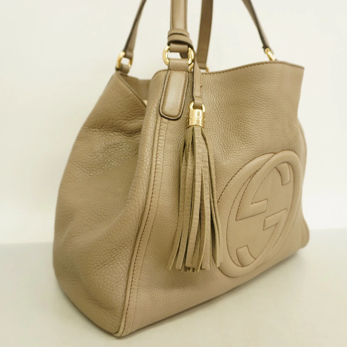 【5od4346】グッチ トートバッグ ソーホー 282309 レザー ベージュ シャンパンゴールド金具【中古】レディース