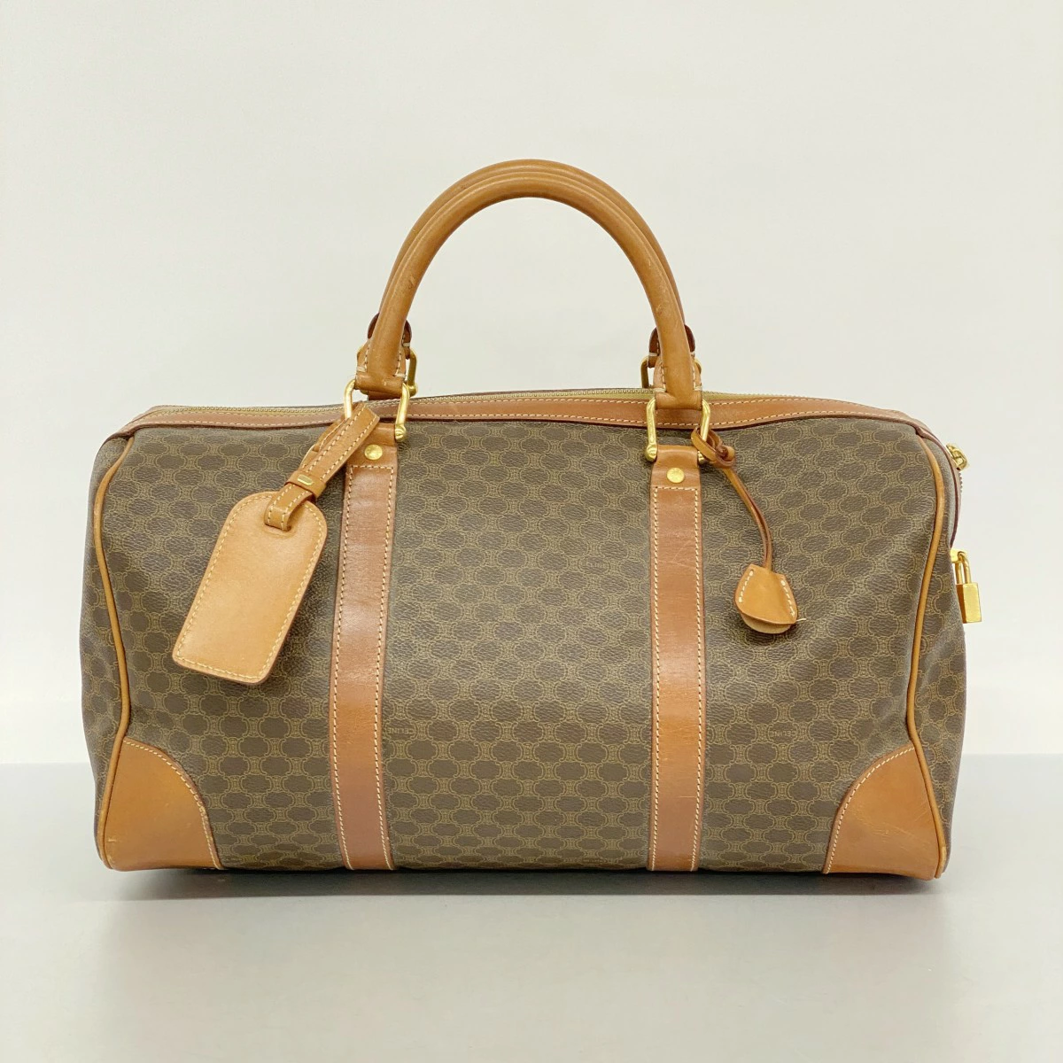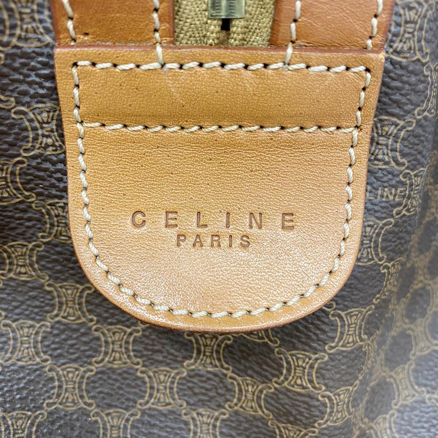【5od4416】セリーヌ ボストンバッグ マカダム PVC ブラウン ゴールド金具【中古】メンズ レディース ユニセックス