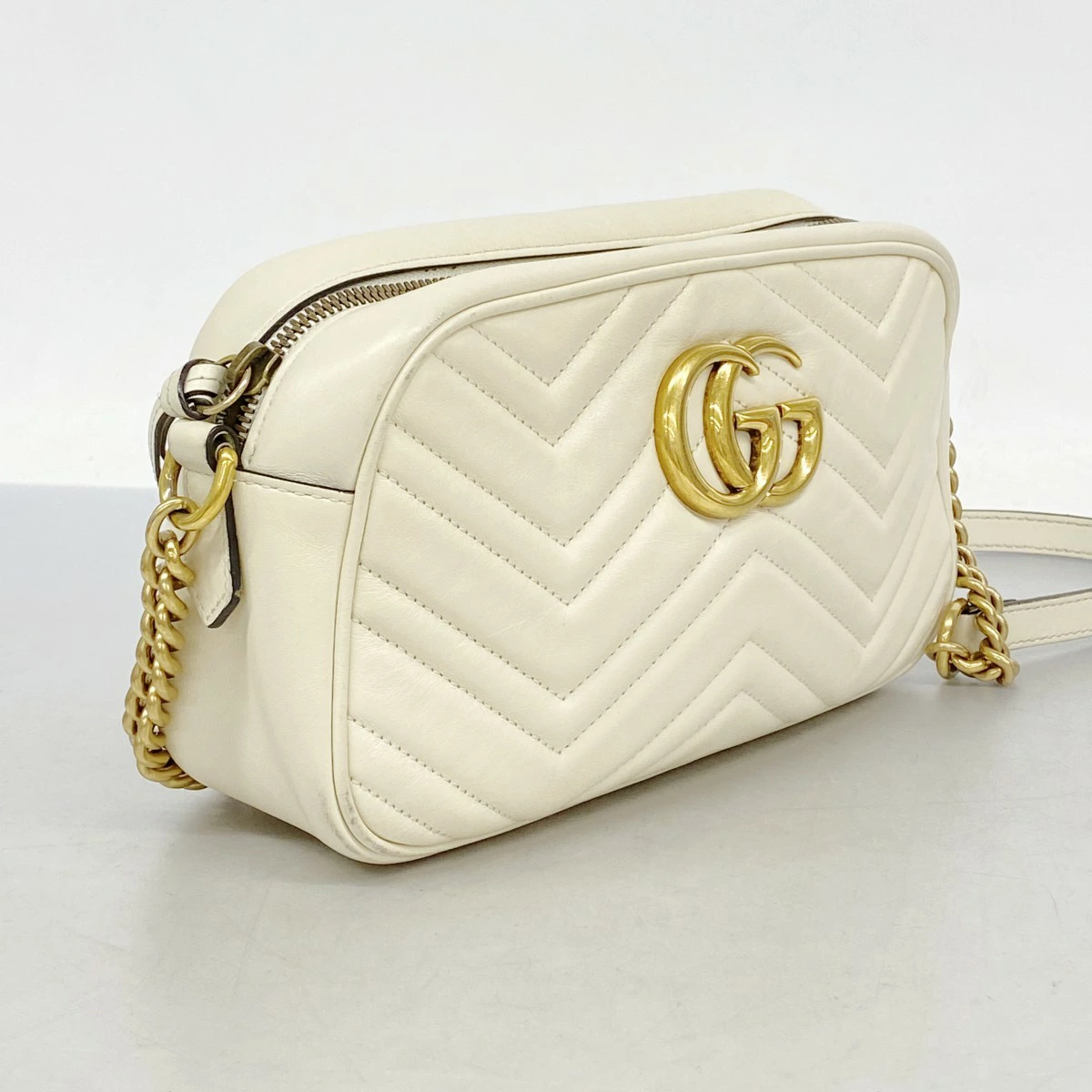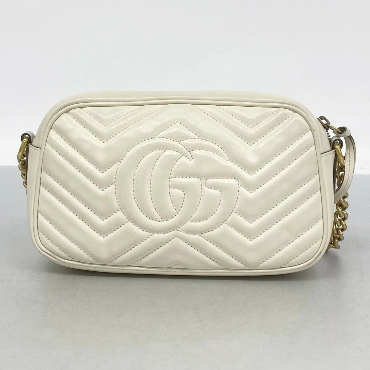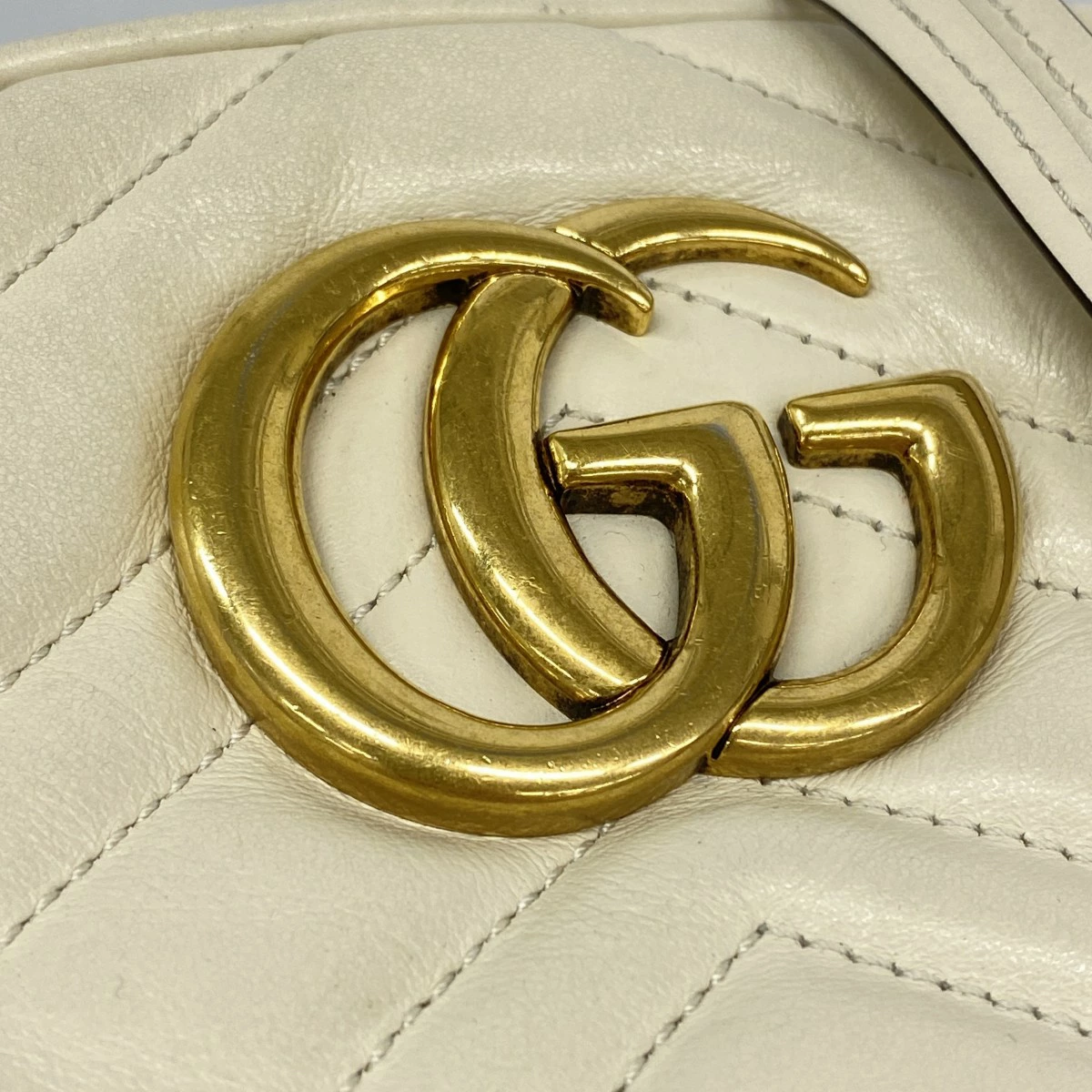 【5od4453】グッチ ショルダーバッグ GGマーモント 447632 レザー アイボリー ゴールド金具【中古】レディース