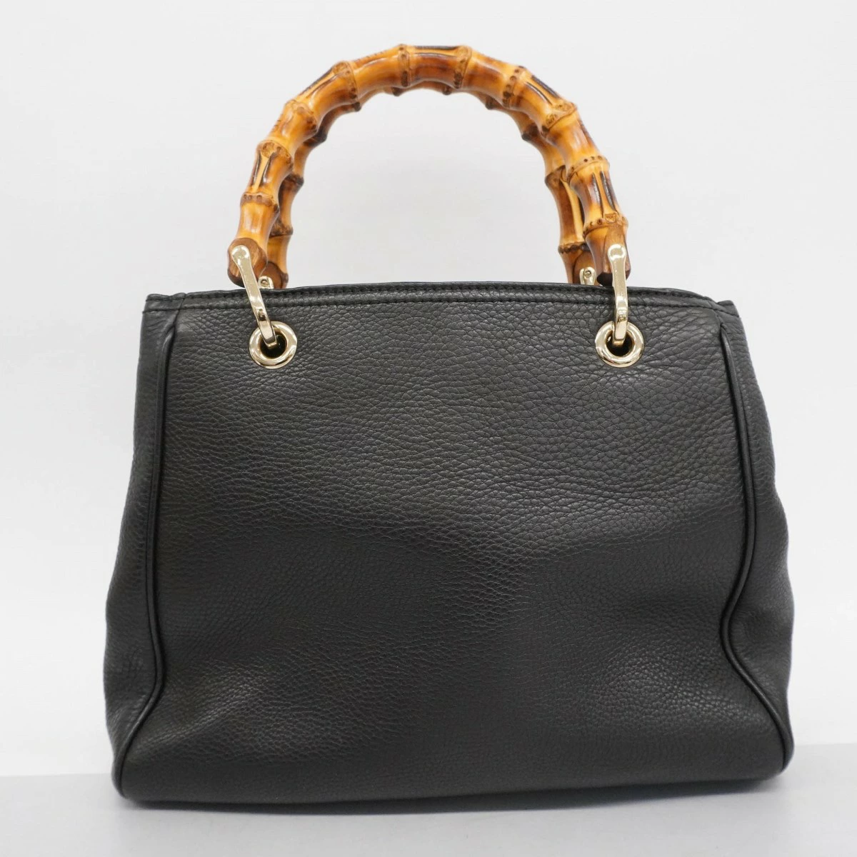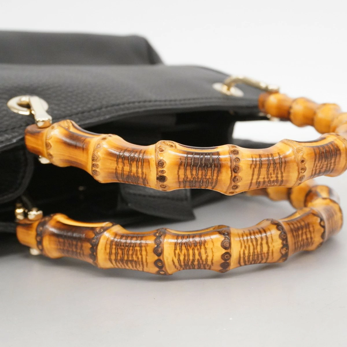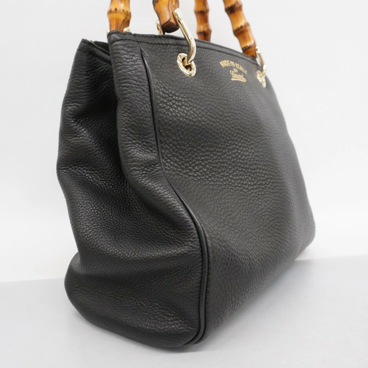 [5od4474] Gucci Bamboo Handbag 336032, Black Leather with Champagne Gold Hardware, 2-Way Bag, Pre-Owned, Women's