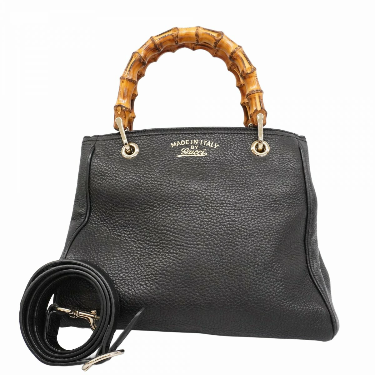 【5od4474】グッチ ハンドバッグ バンブー 336032 レザー ブラック シャンパンゴールド金具 2wayバッグ【中古】レディース
