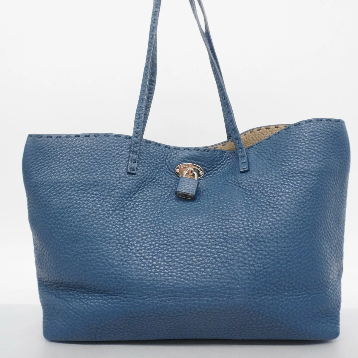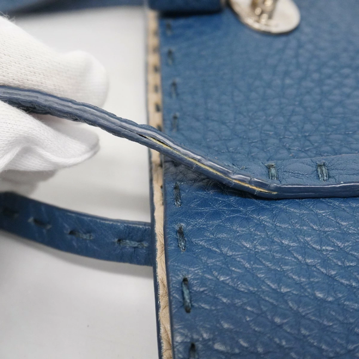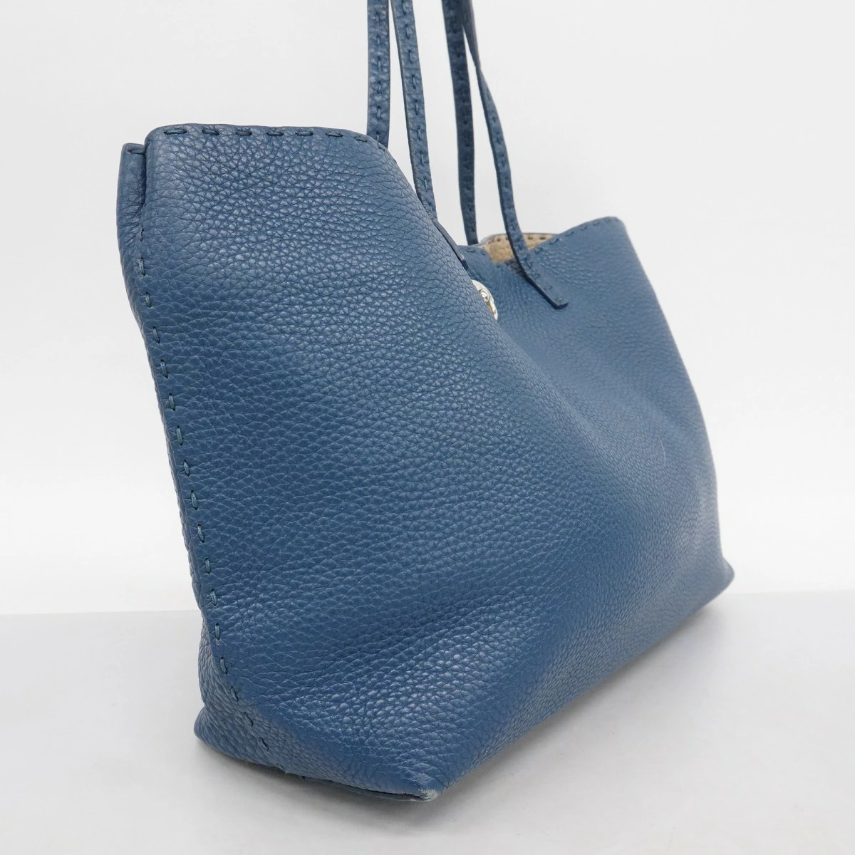 【5od4495】フェンディ トートバッグ セレリア レザー ブルー シルバー金具【中古】レディース