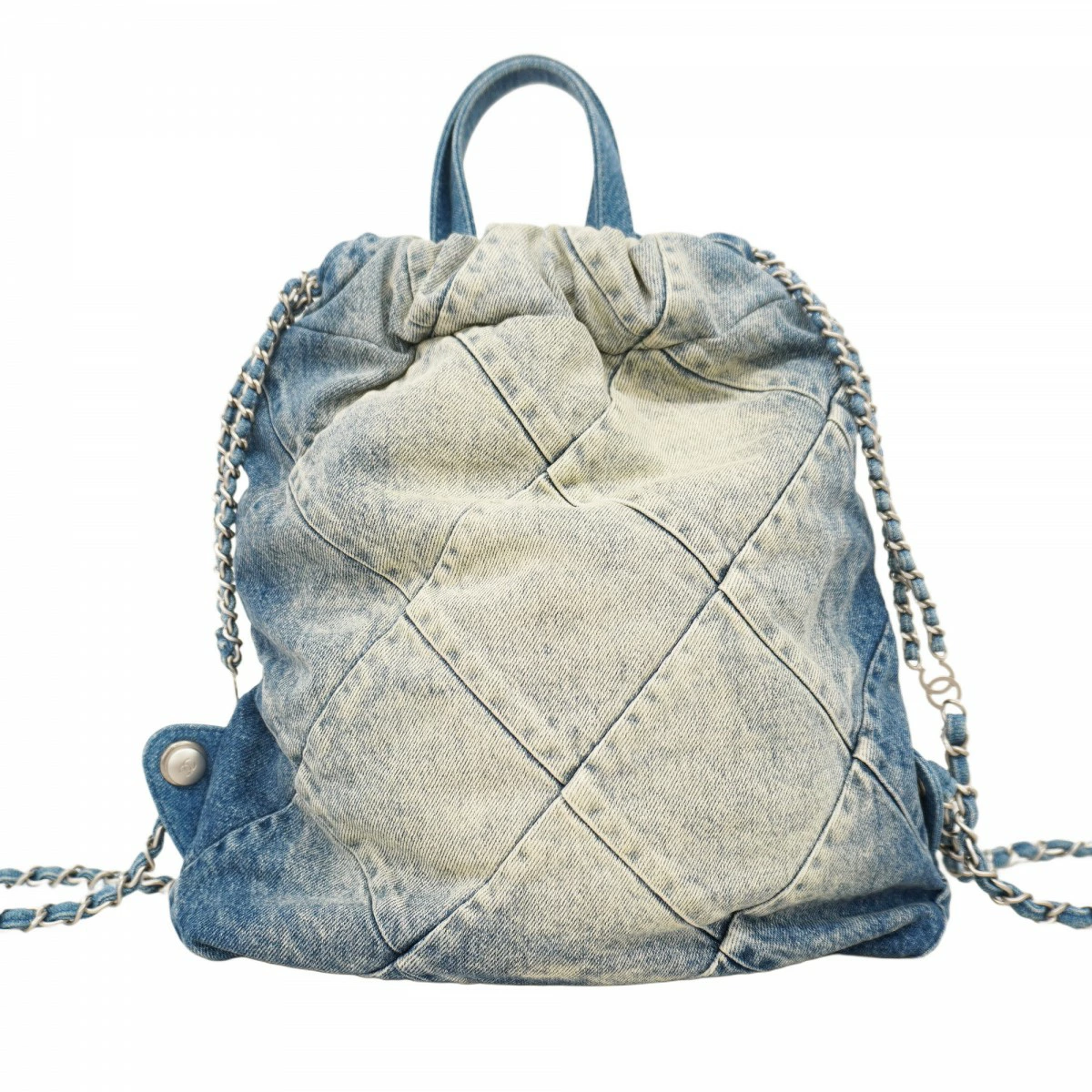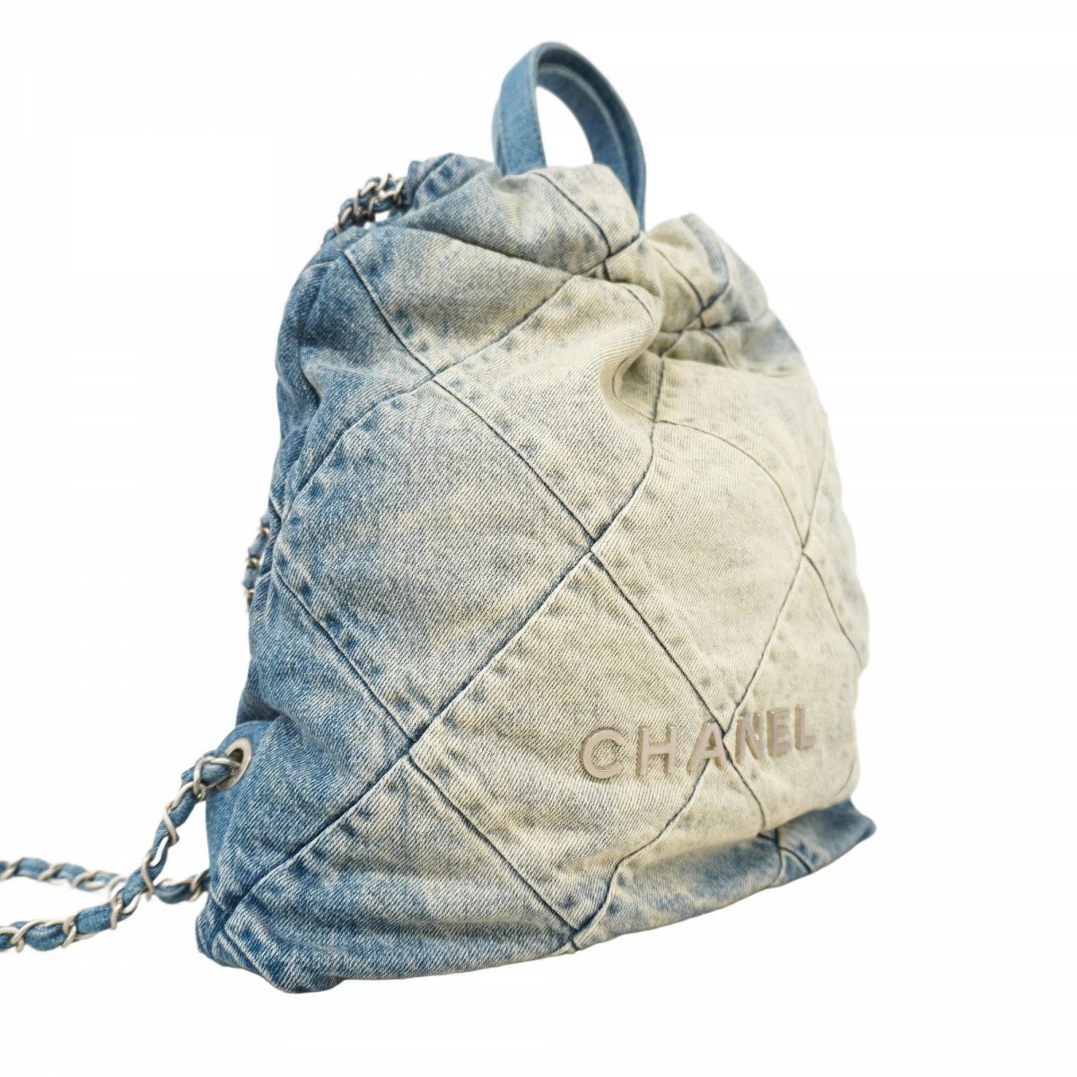 【5od4747-h】シャネル リュック・デイパック シャネル22 デニム ブルー シルバー金具 チェーン【中古】レディース