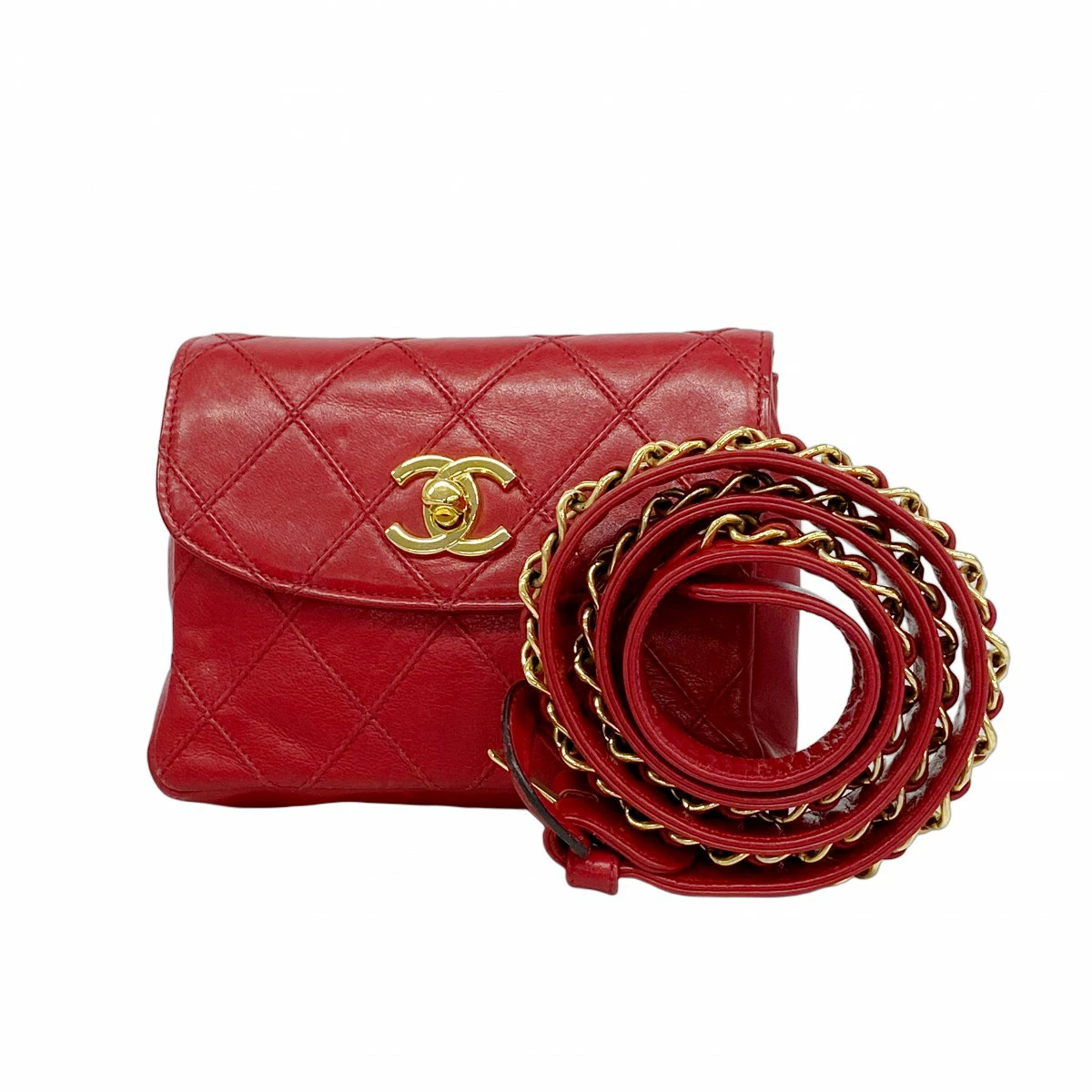【5od4803】シャネル ウエストバッグ ビコローレ ラムスキン レッド ゴールド金具【中古】レディース