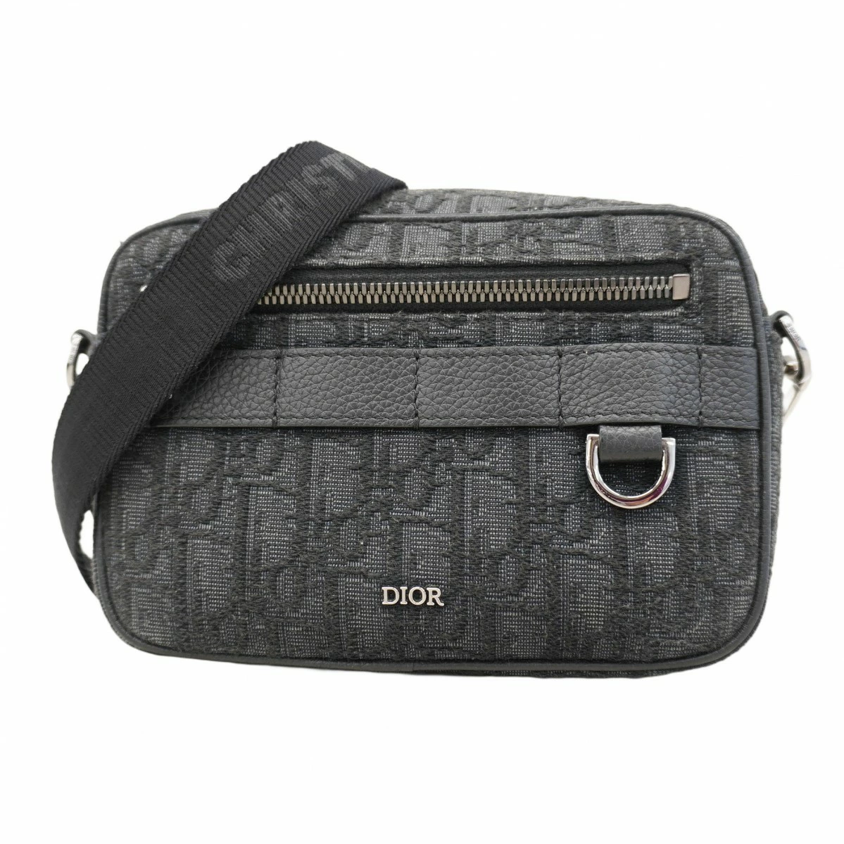 【5od4853-h】クリスチャンディオール ショルダーバッグ オブリークジャガード キャンバス ブラック シルバー金具【中古】メンズ