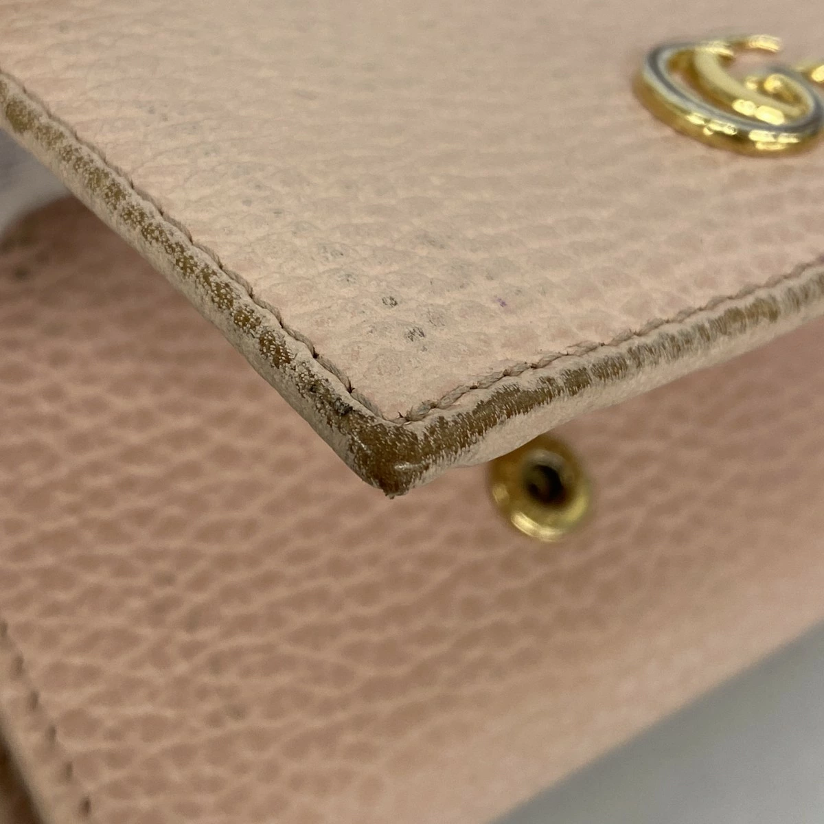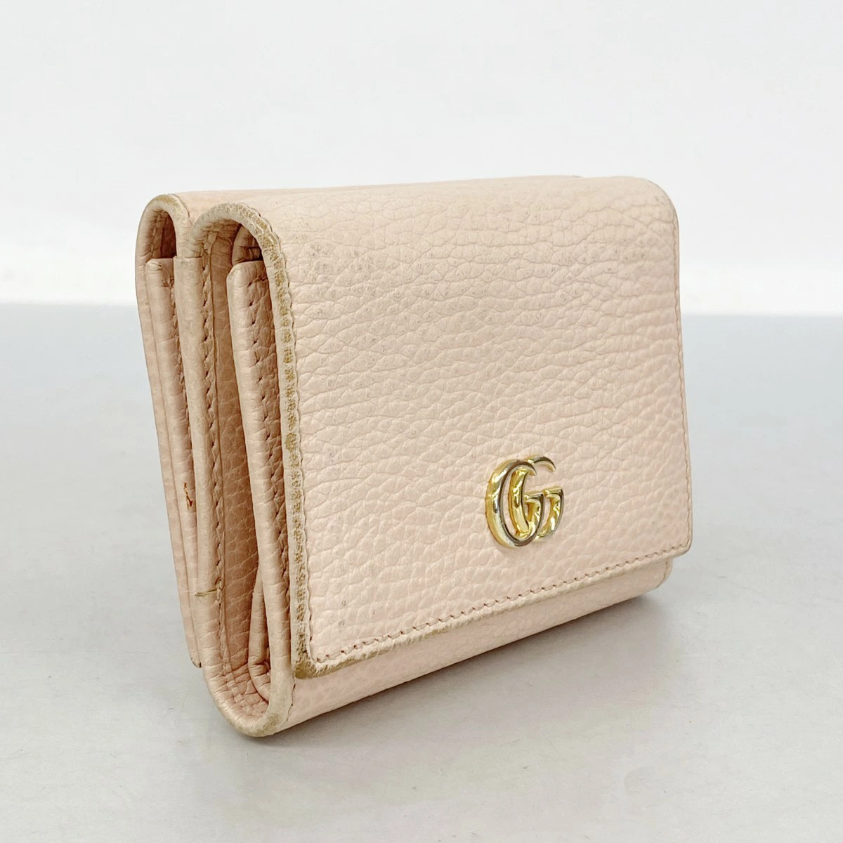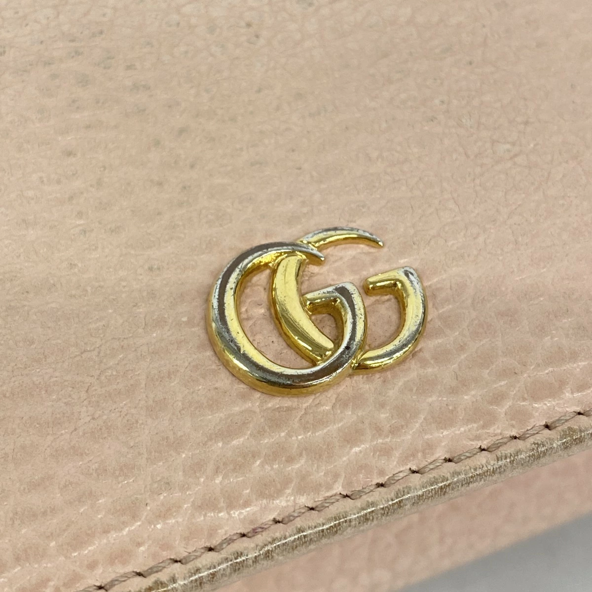 【5oe4940-r】グッチ 三つ折り財布 GGマーモント 474746 レザー ピンク ゴールド金具【中古】レディース