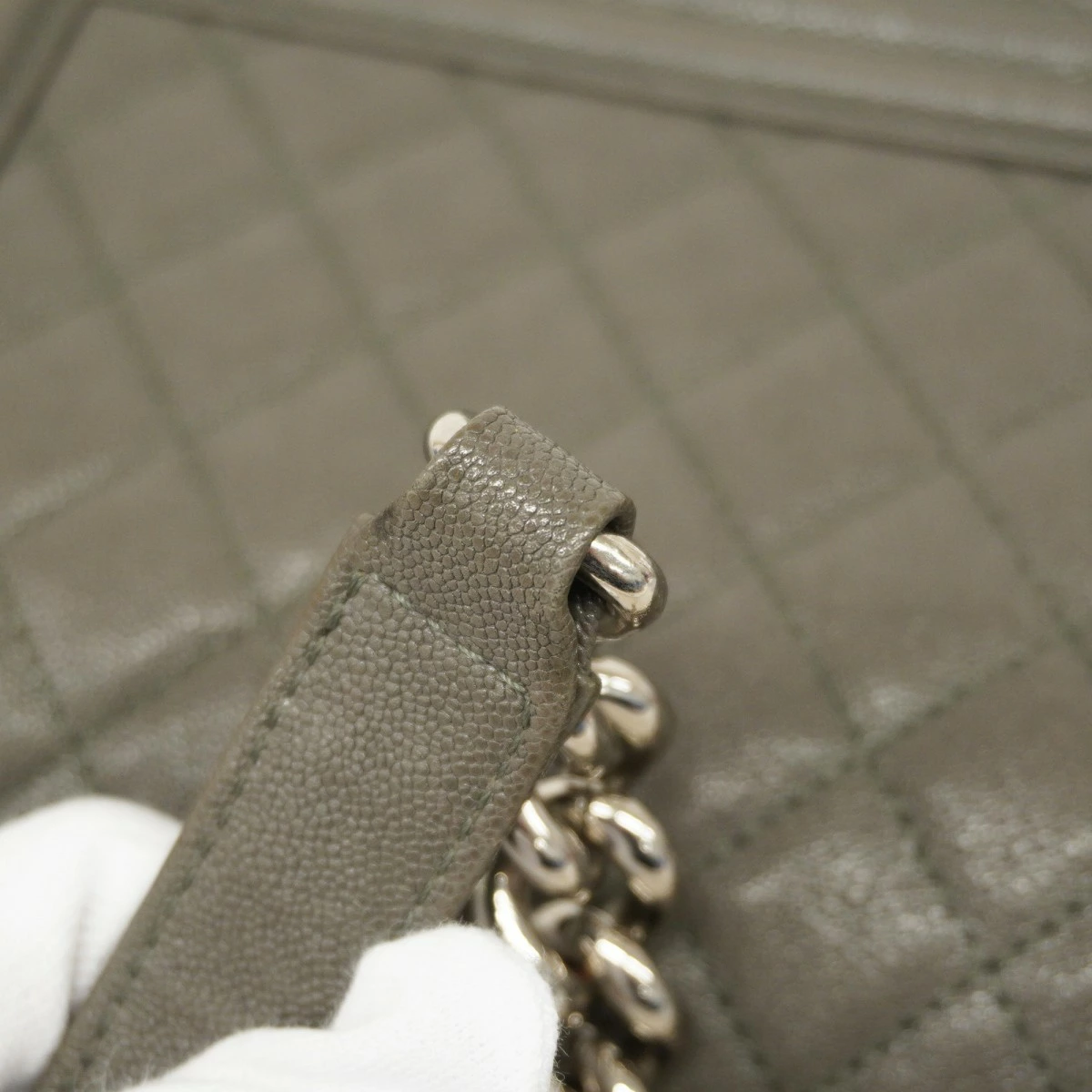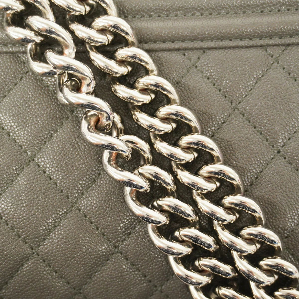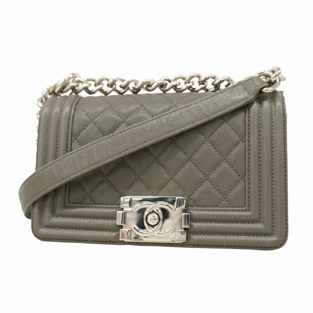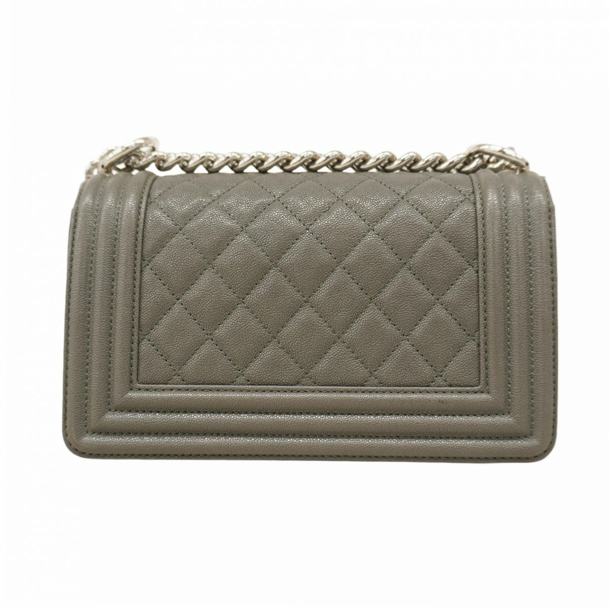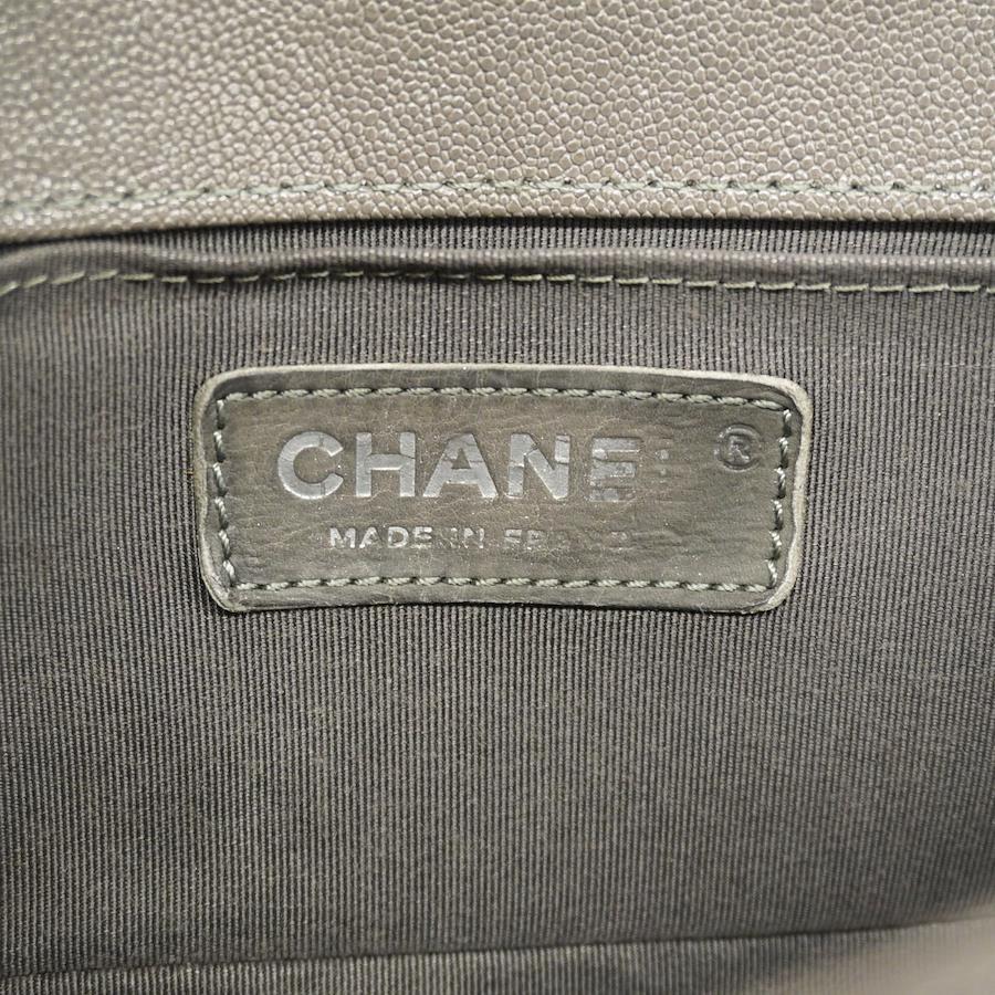 【5oe4949-h】シャネル ショルダーバッグ ボーイシャネル チェーンショルダー キャビアスキン グレー シルバー金具【中古】レディース