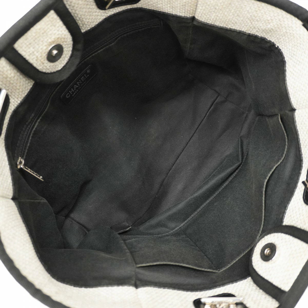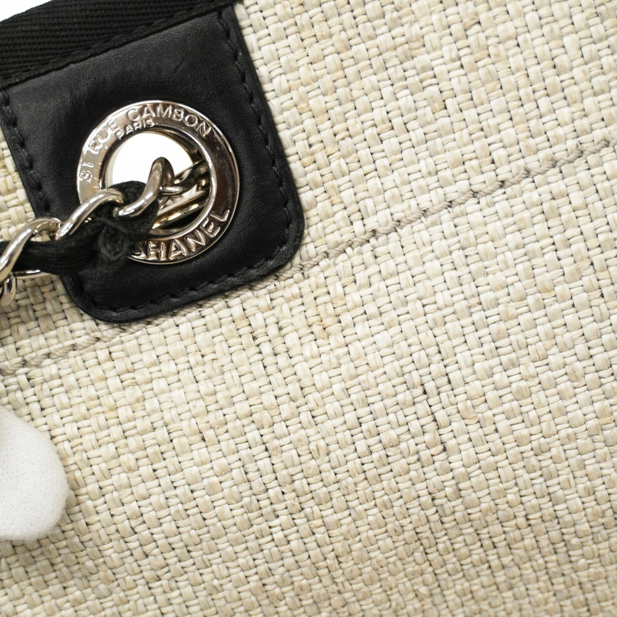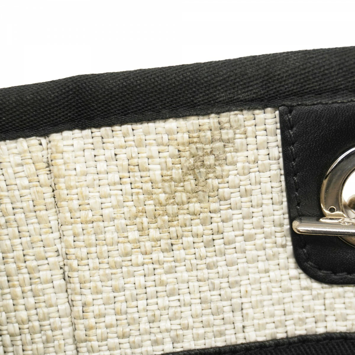 【5oe5044-h】シャネル トートバッグ ドーヴィル ラフィア グレー ブラック シルバー金具【中古】レディース