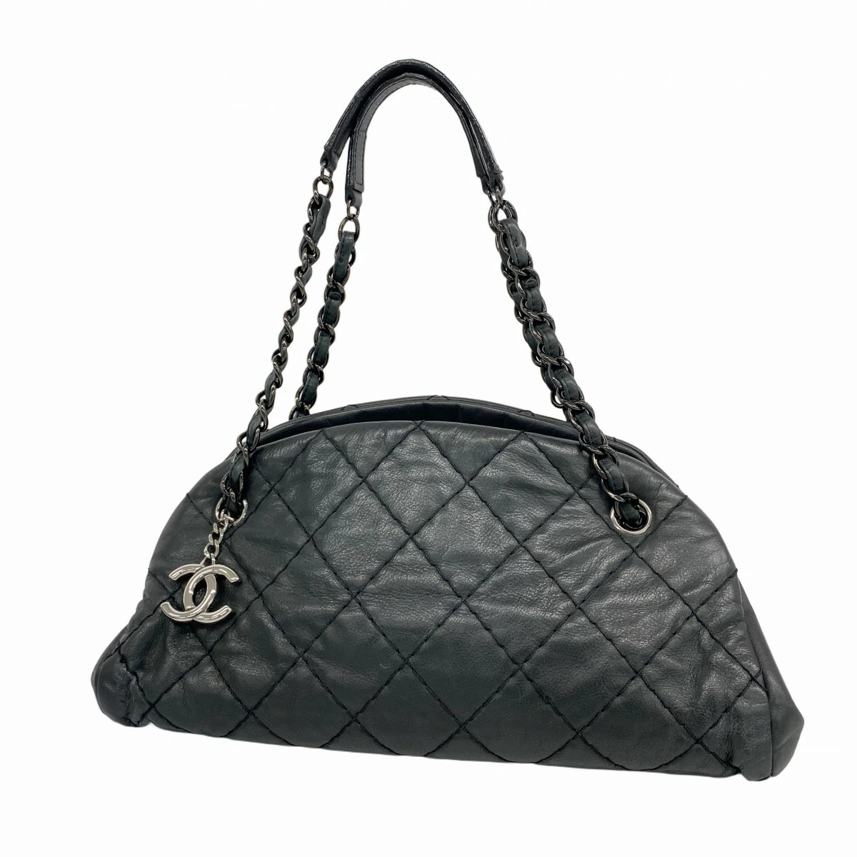 【5oe5075-r】シャネル ショルダーバッグ マトラッセ チェーンショルダー マドモアゼル/ボーリングバッグ レザー ブラック シルバー金具【中古】レディース