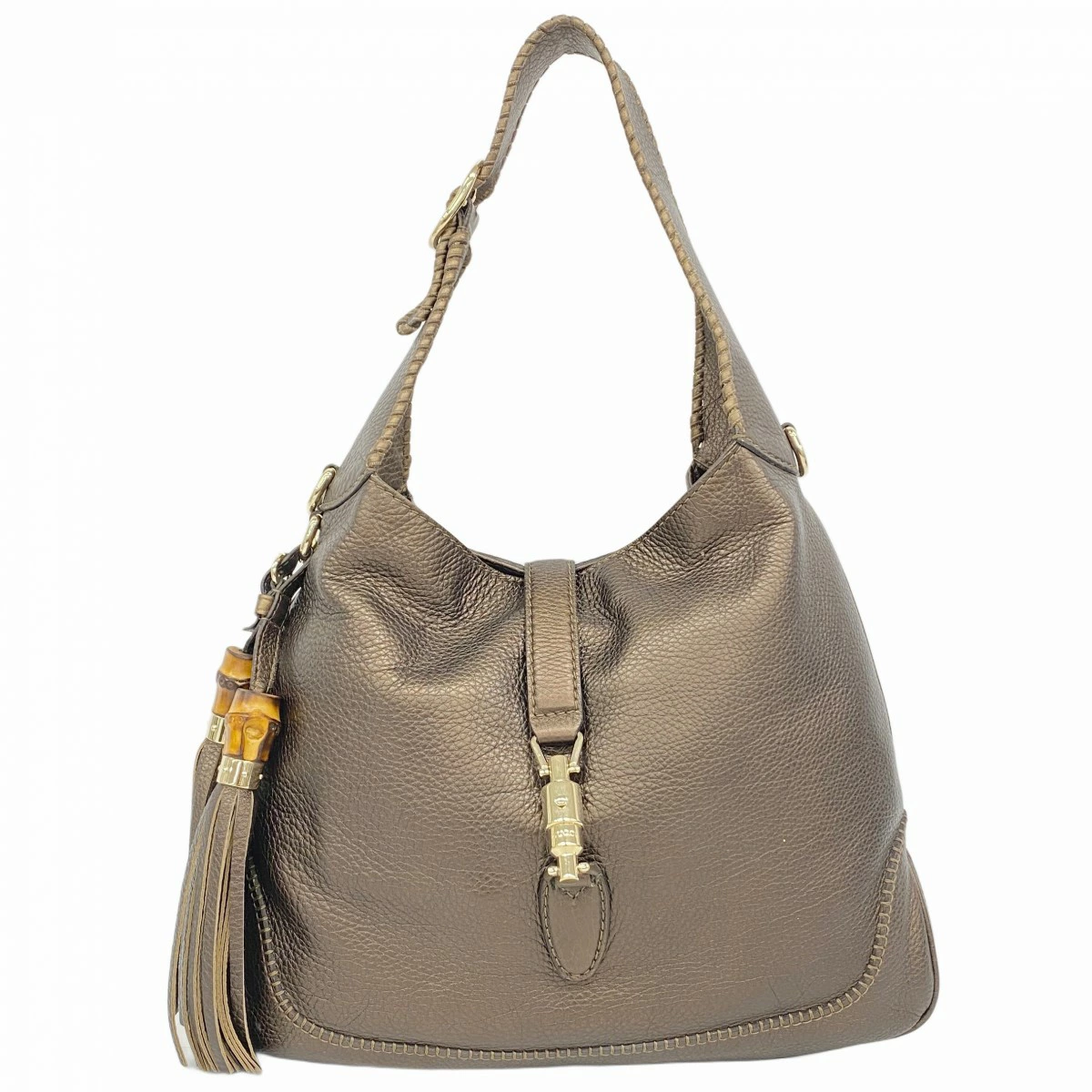 【5oe5450】グッチ ショルダーバッグ バンブー ニュージャッキー 246907 レザー ブラウン シャンパンゴールド金具【中古】レディース