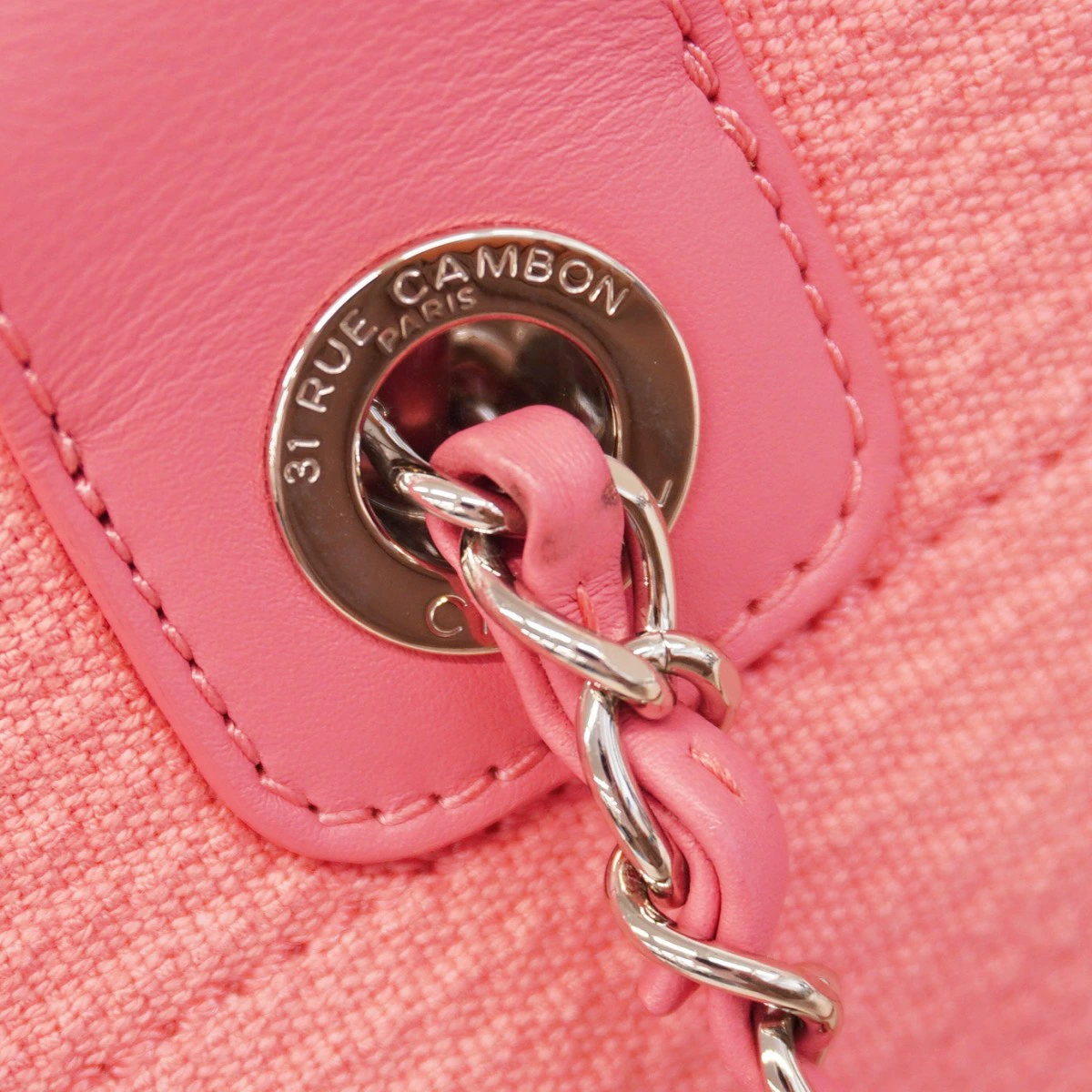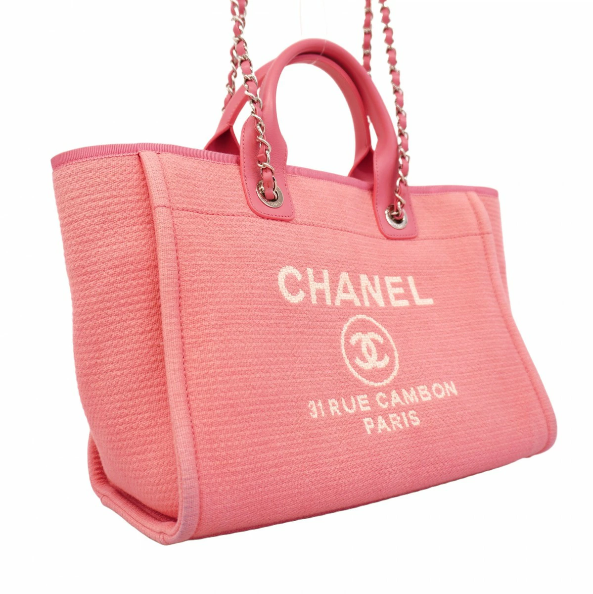 【5oe5507-h】シャネル トートバッグ ドーヴィル チェーン キャンバス ピンク シルバー金具 2wayバッグ【中古】レディース