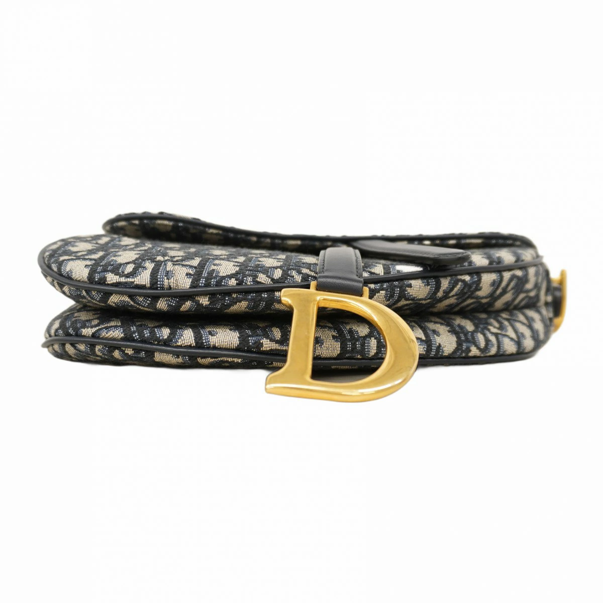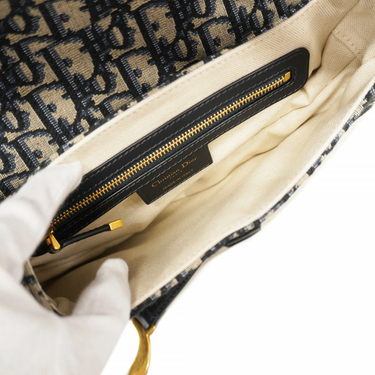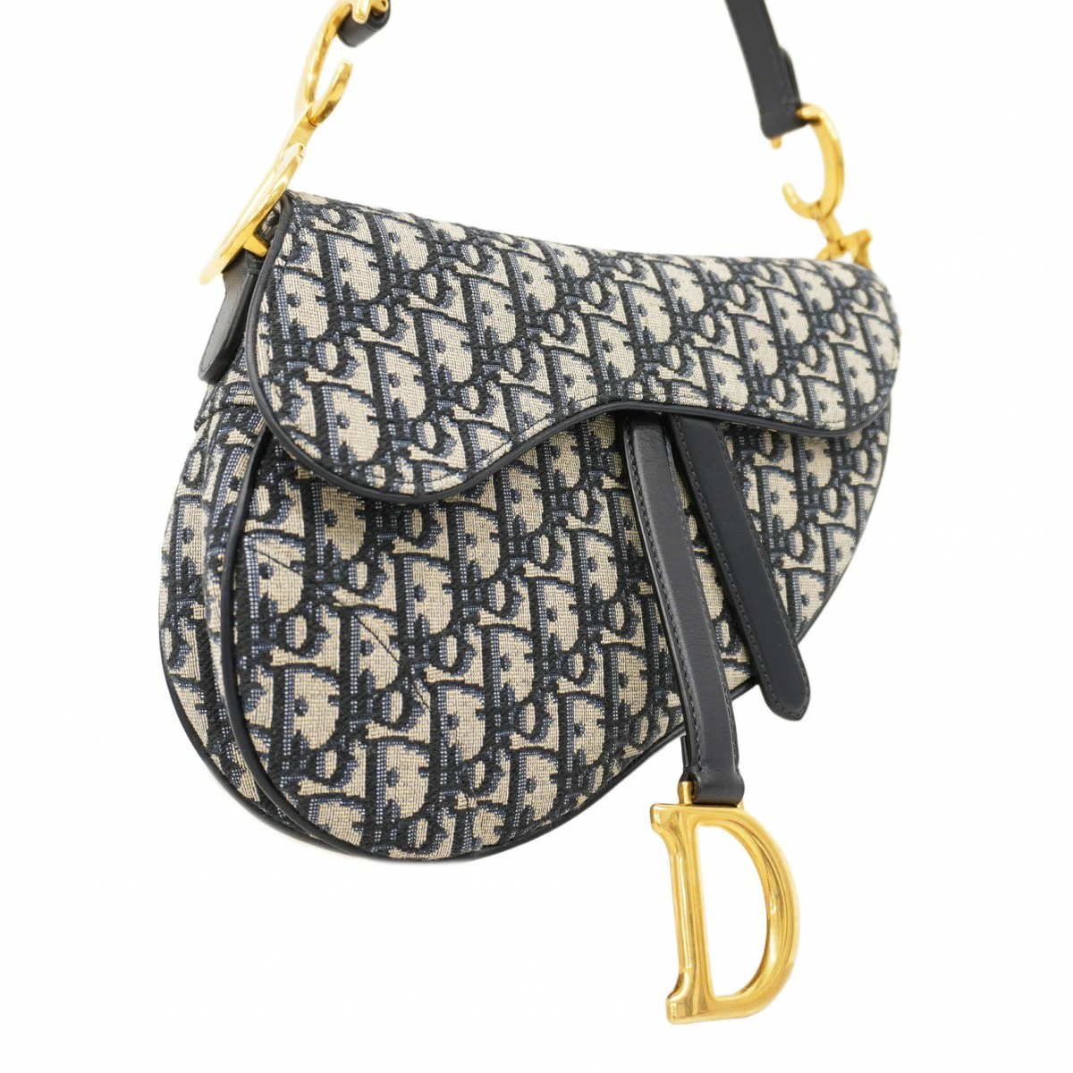 [5oe5728-h] Christian Dior Oblique Saddle Canvas Handbag in Navy with Gold Hardware, 2-Way Bag [Pre-owned] Women's