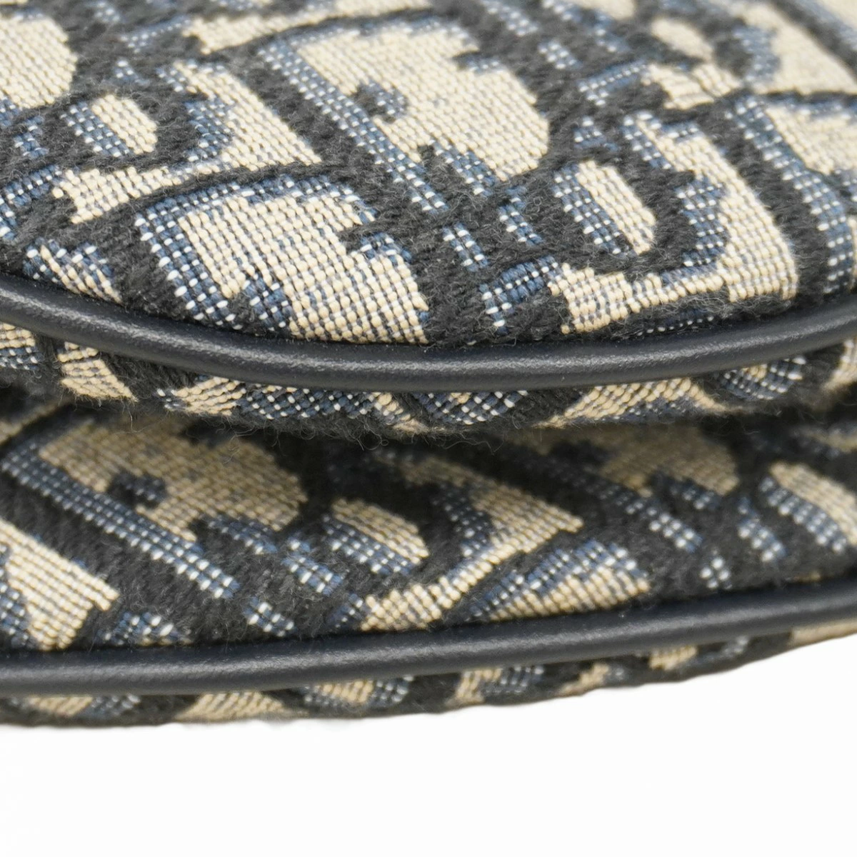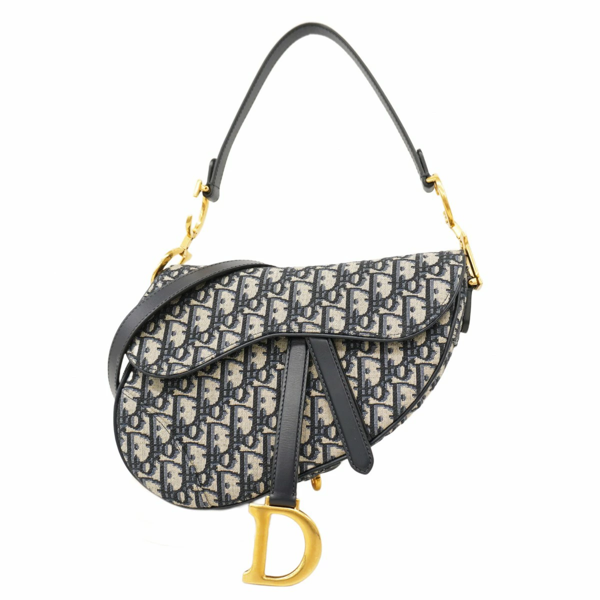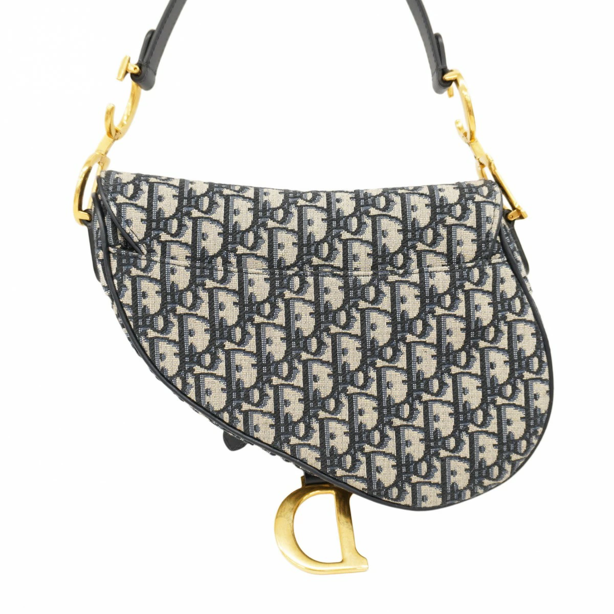[5oe5728-h] Christian Dior Oblique Saddle Canvas Handbag in Navy with Gold Hardware, 2-Way Bag [Pre-owned] Women's