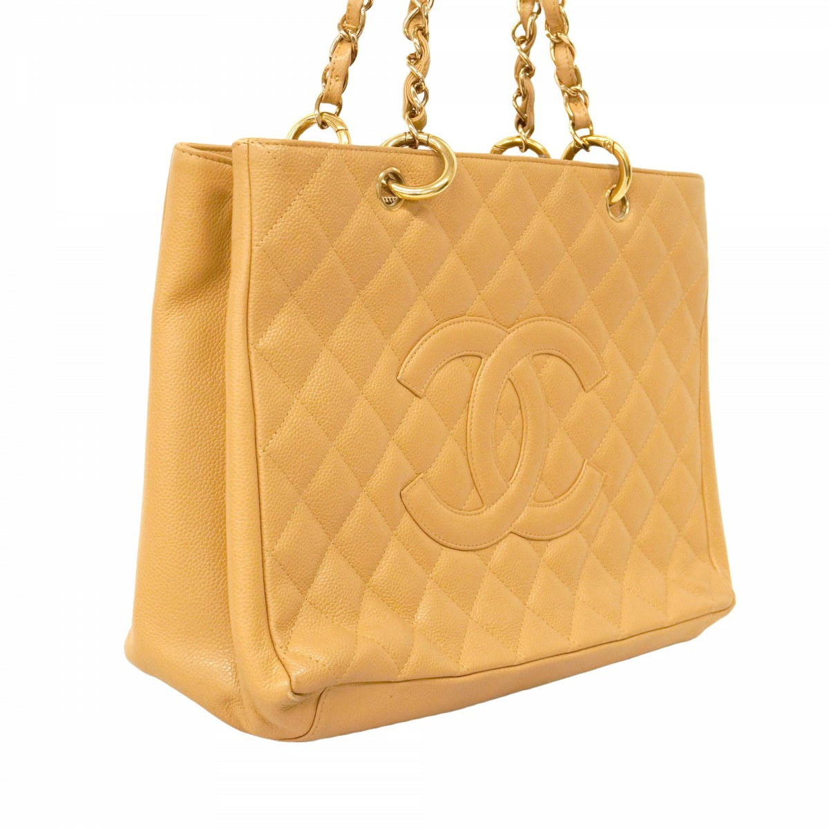 【5oe5763-h】シャネル トートバッグ マトラッセ チェーン ベージュ ゴールド金具 チェーン【中古】レディース