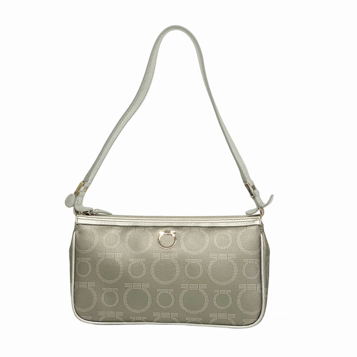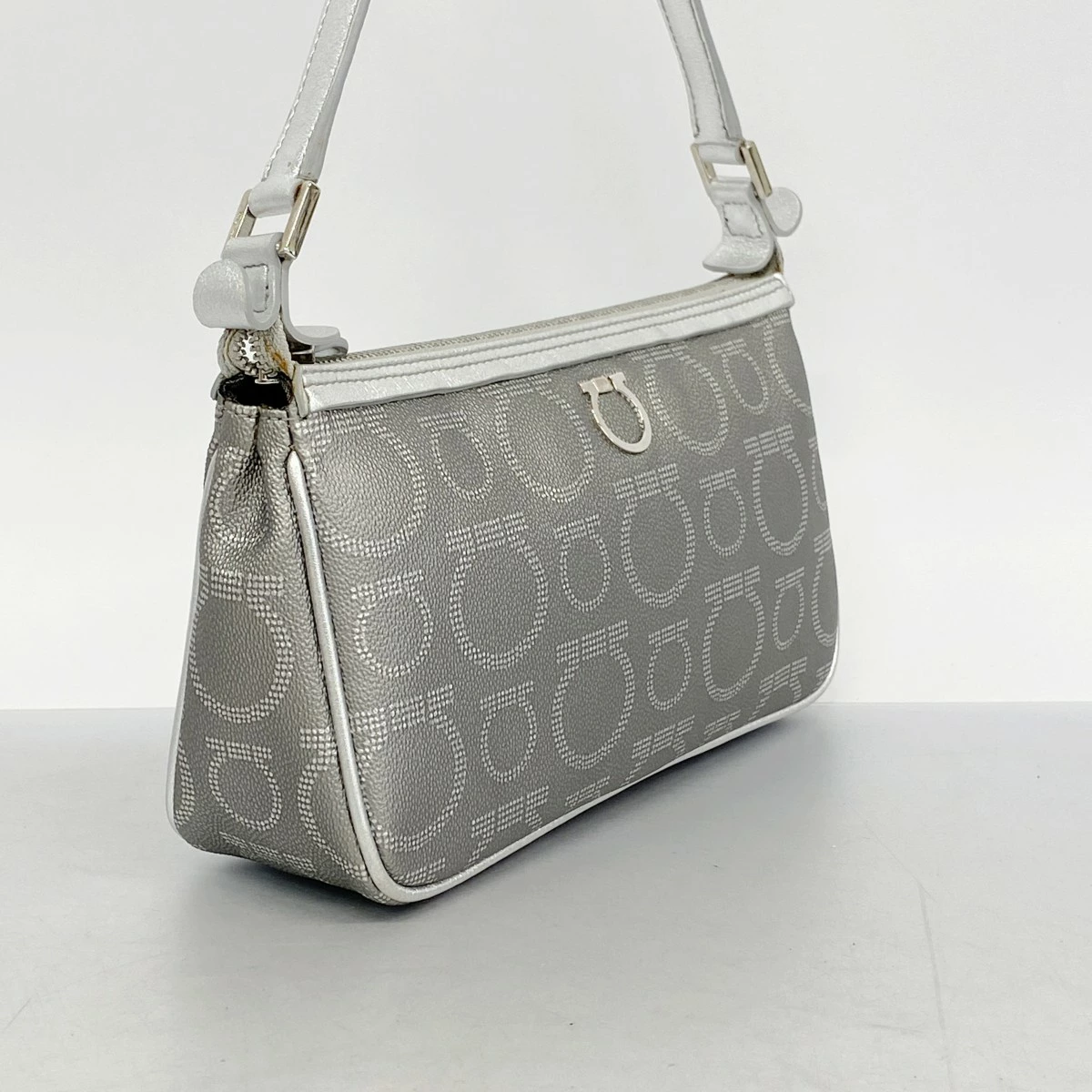 【5oe5822】サルヴァトーレフェラガモ ショルダーバッグ ガンチーニ PVC グレー シルバー金具【中古】レディース
