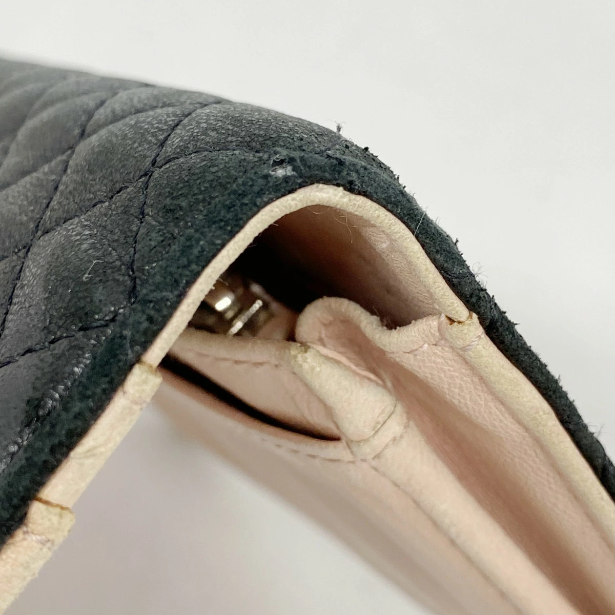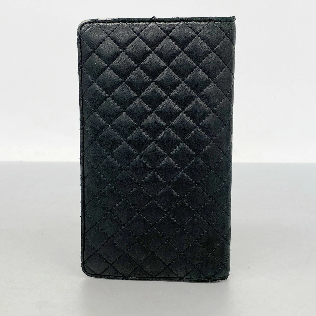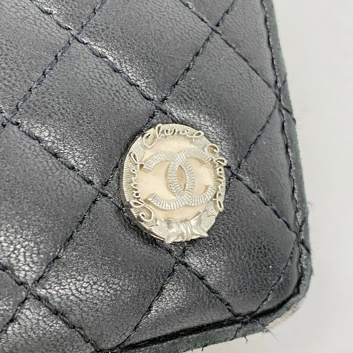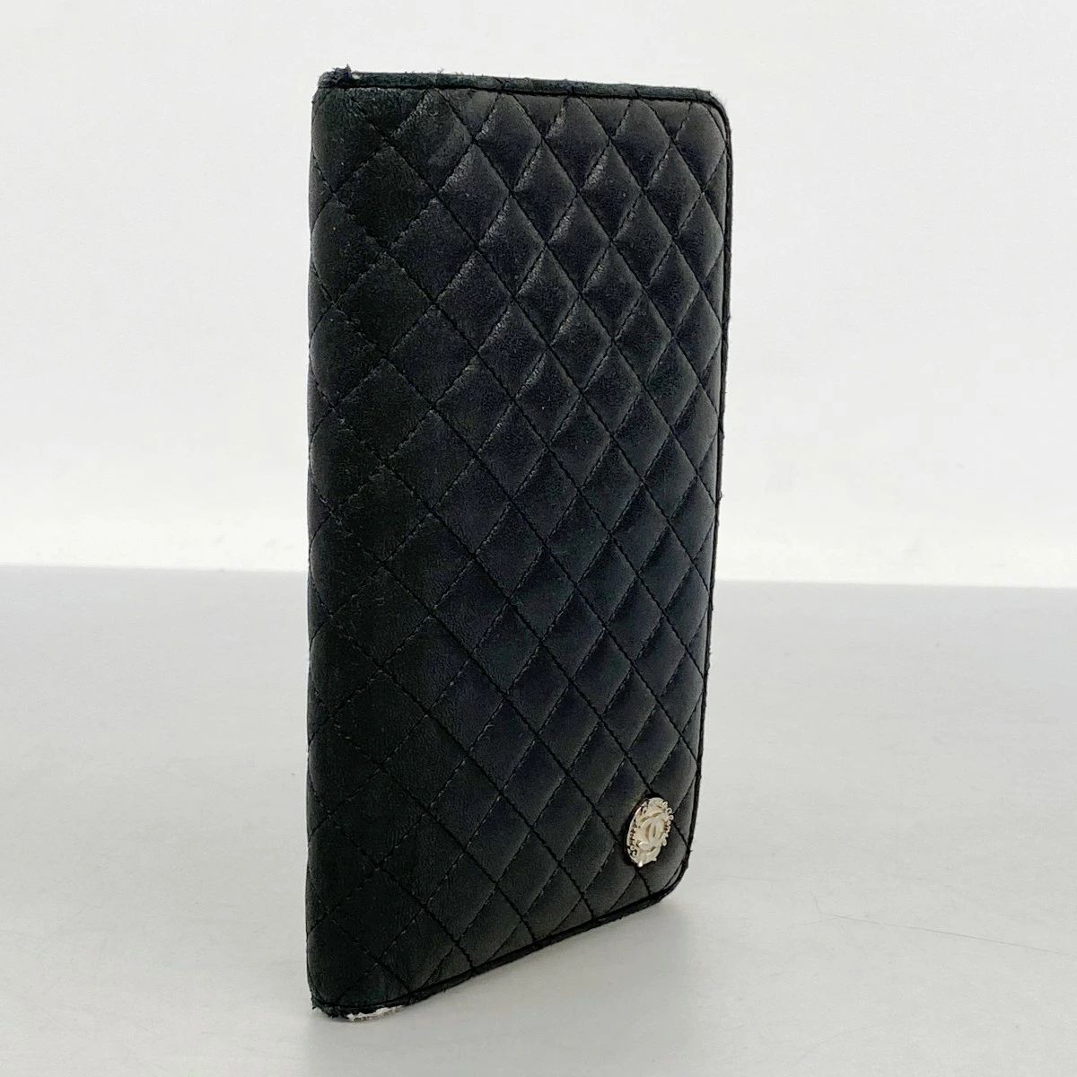 【5oe5867】シャネル 長財布 マトラッセ ラムスキン ブラック シルバー金具【中古】レディース