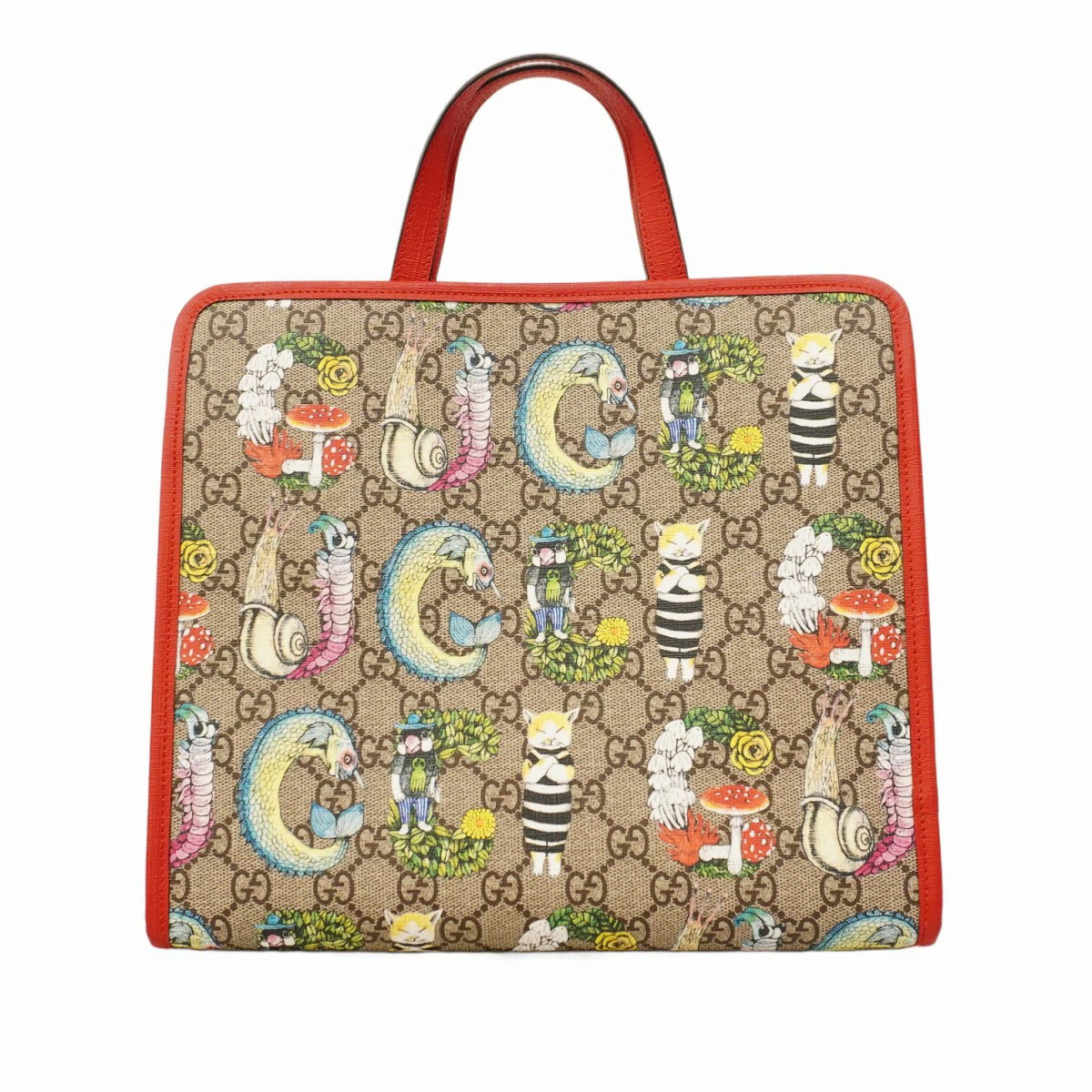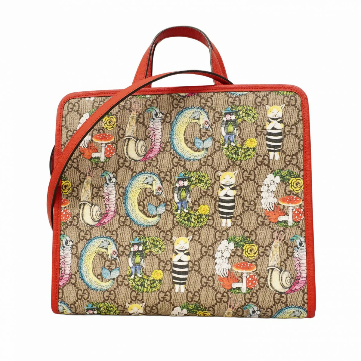 【5oe6210】グッチ ハンドバッグ GGスプリーム ヒグチユウココラボ 612992 PVC ベージュ レッド シルバー金具 2wayバッグ【中古】レディース